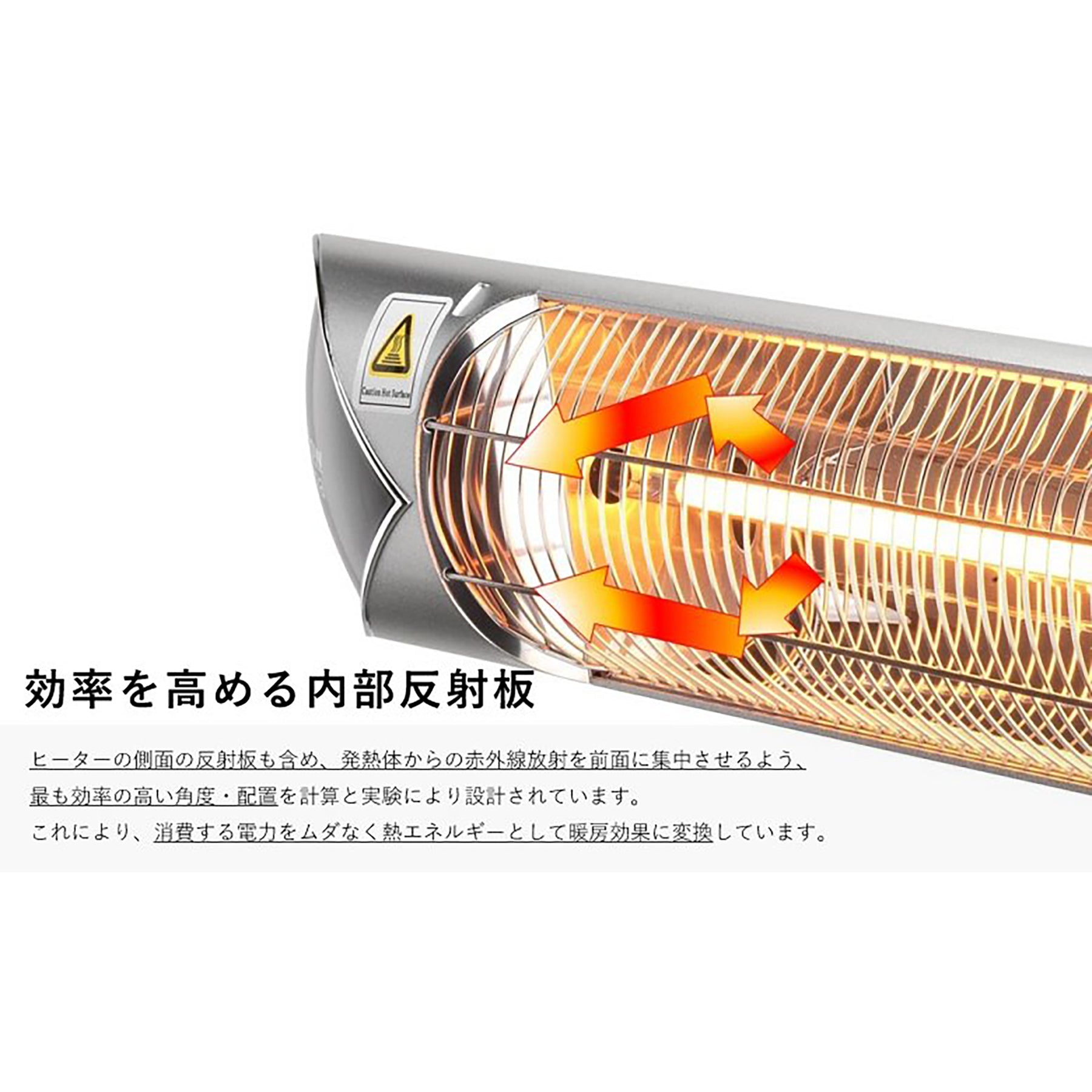 ●メイン筐体にアルミニウムを使用することで、サビにも強い耐性を持ち、工夫を凝らした内部の反射鏡は、ヒーターの熱効率が最大限となるよう設計されています。