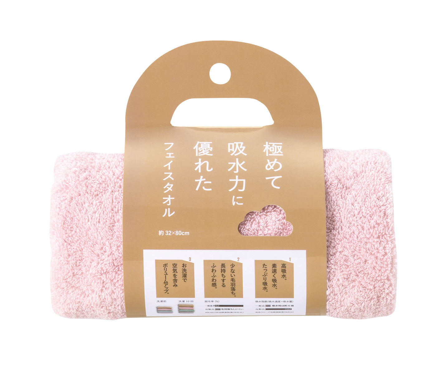 極めて吸水力に優れたタオル ピンク B/T890の数量を増やす