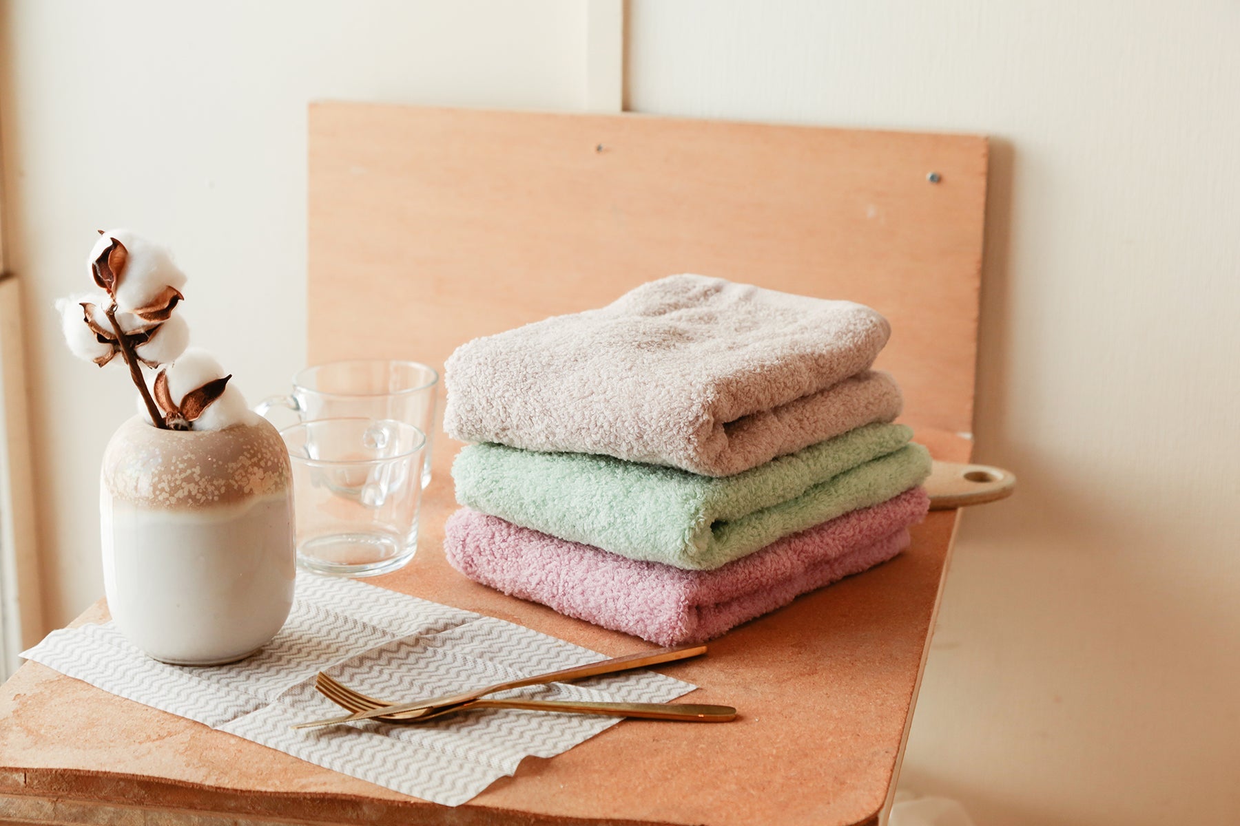 ●三重県おぼろタオルの技術でしか織れない糸を使っているため、軽く、乾きやすく、肌触りが非常にやわらかいタオルです。