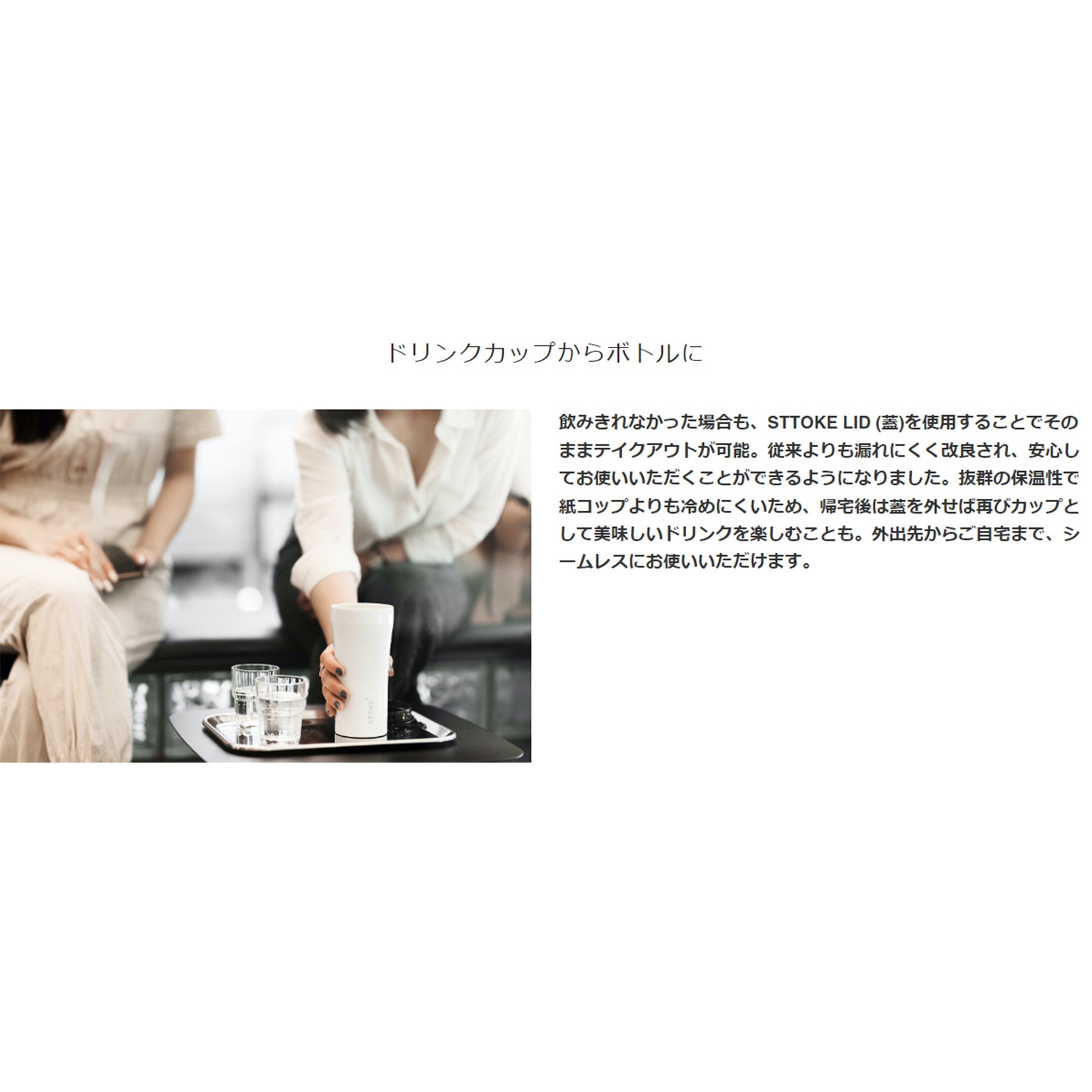 もれない完全止水蓋付きのタンブラーに。 |