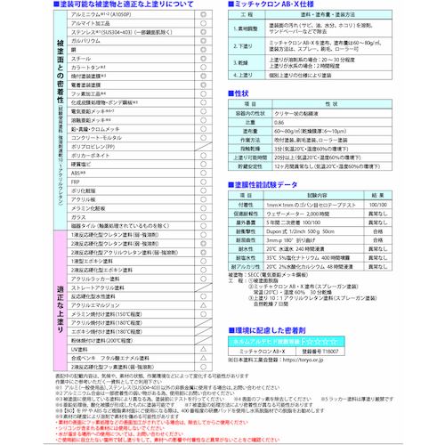 ミッチャクロン AB・Xは、金属から樹脂まで(アルミやステンレス、ガルバリウムなどの)多種多様な建築建材に幅広く使用できる、密着性・耐久性に優れたプライマーです。