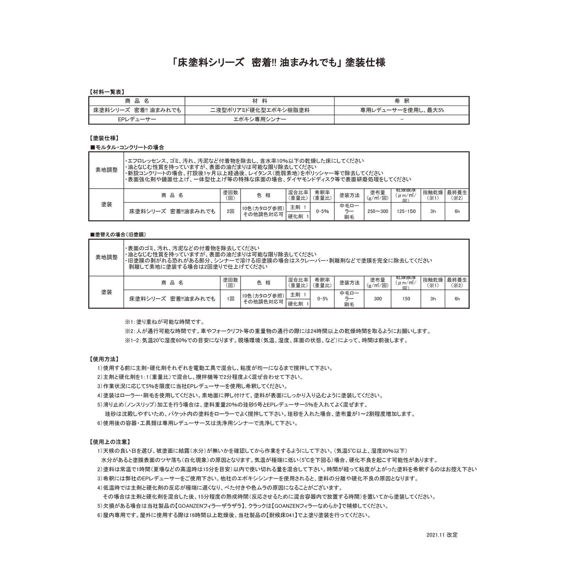 床塗料シリーズ 密着!!油まみれでも 1kgセットは、油の浸透した床でも、長期間密着し、プライマーも下塗りも必要なく、誰にでも簡単にコンクリート床に塗装することができます。