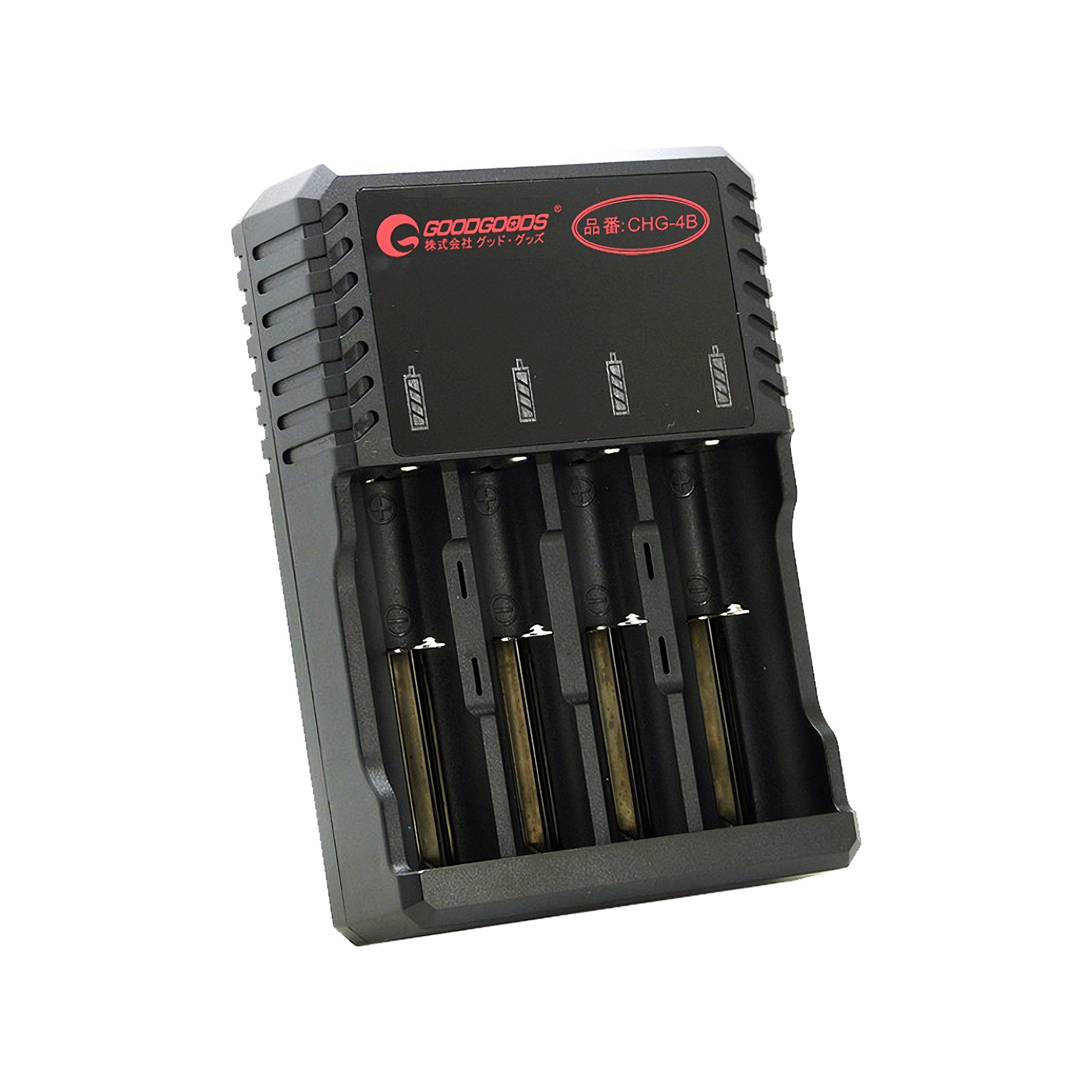 リチウムイオン電池専用充電器 (4本タイプ)CHG-4Bは、多種充電池に対応しており、各種容量混在充電、4本独立充電が可能な充電器です。各保護機能も搭載されています。