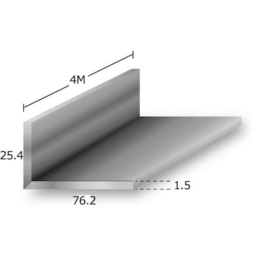 アルミ不等辺アングル アルマイト付 t1.5X25.4X76.2X4m シルバー