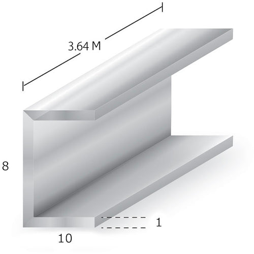 アルミチャンネル アルマイト付 t1X8X10X3.64m シルバー