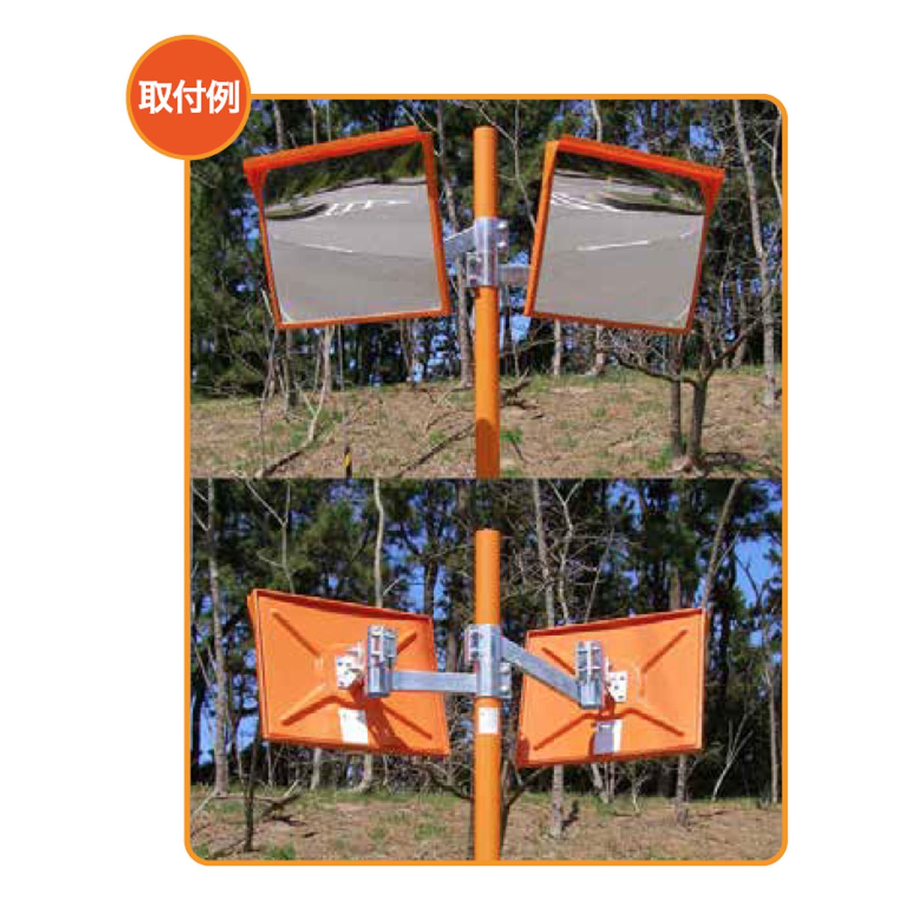 ●支柱や電柱取付金具などに鏡面を2面取り付ける場合に必要となる金具です。