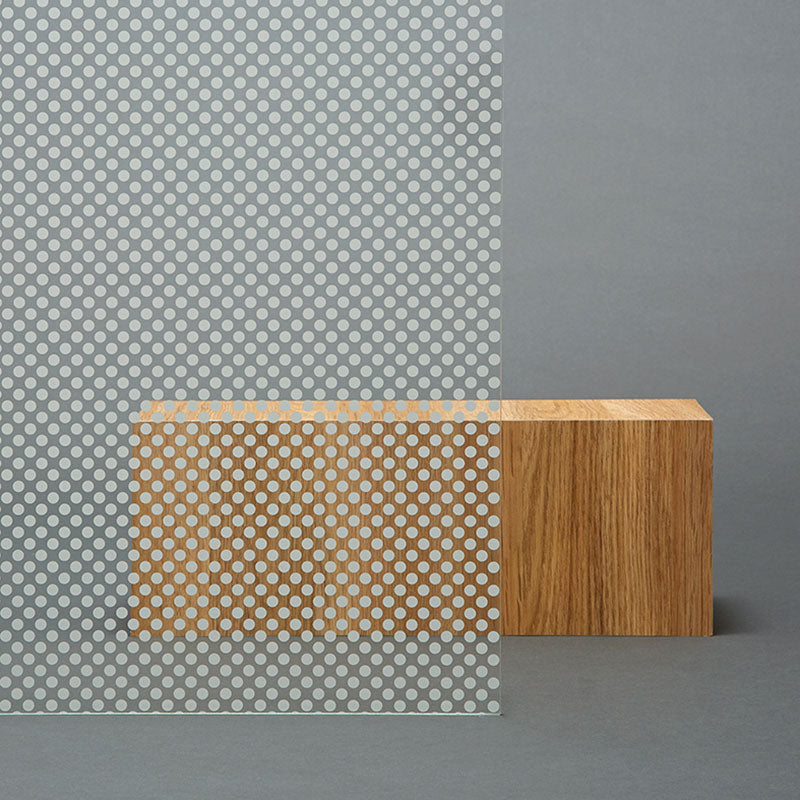 色の濃さや、柄の大きさにバリエーションがあり、ガラスにユニークな演出を与えます。