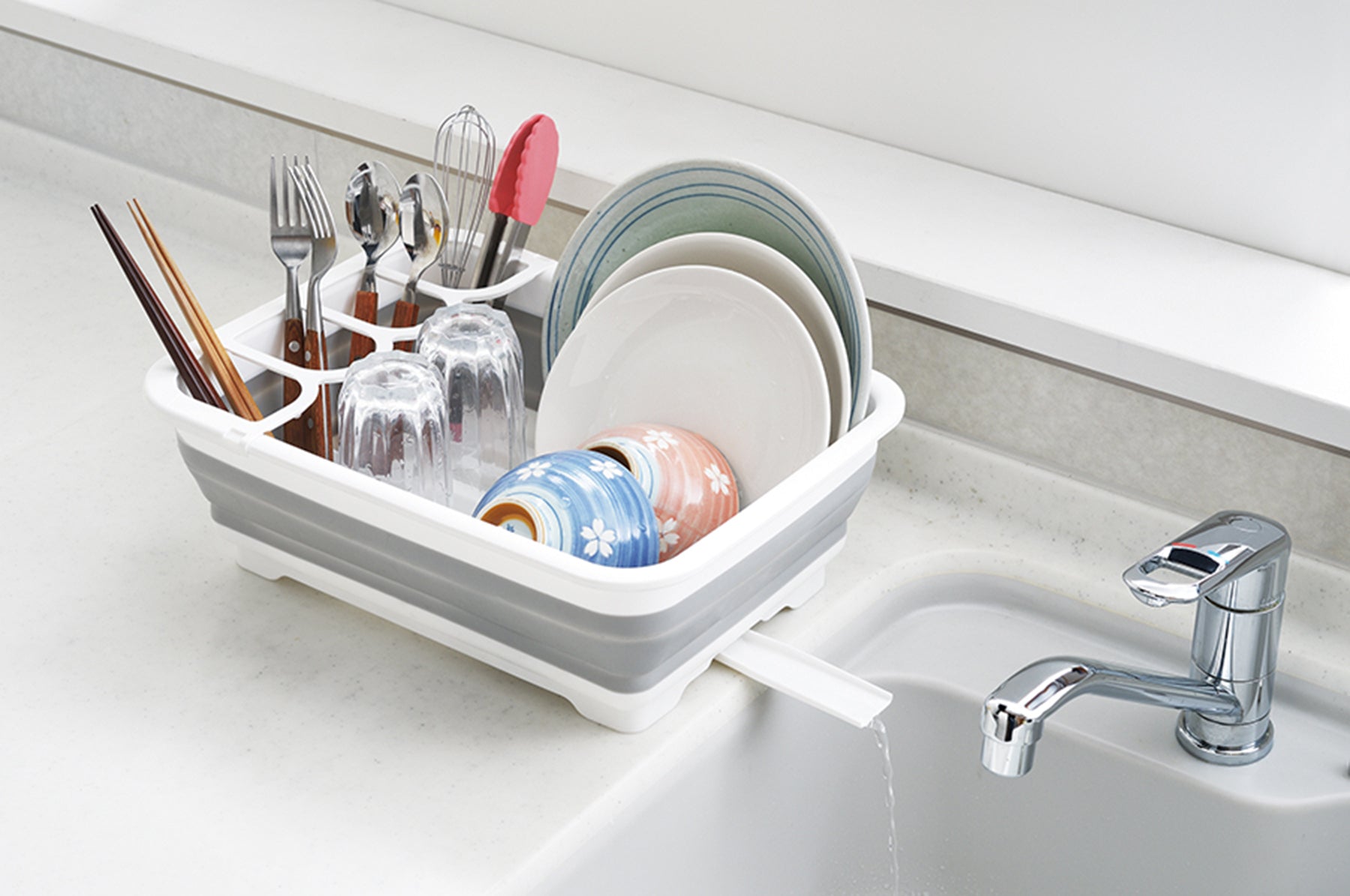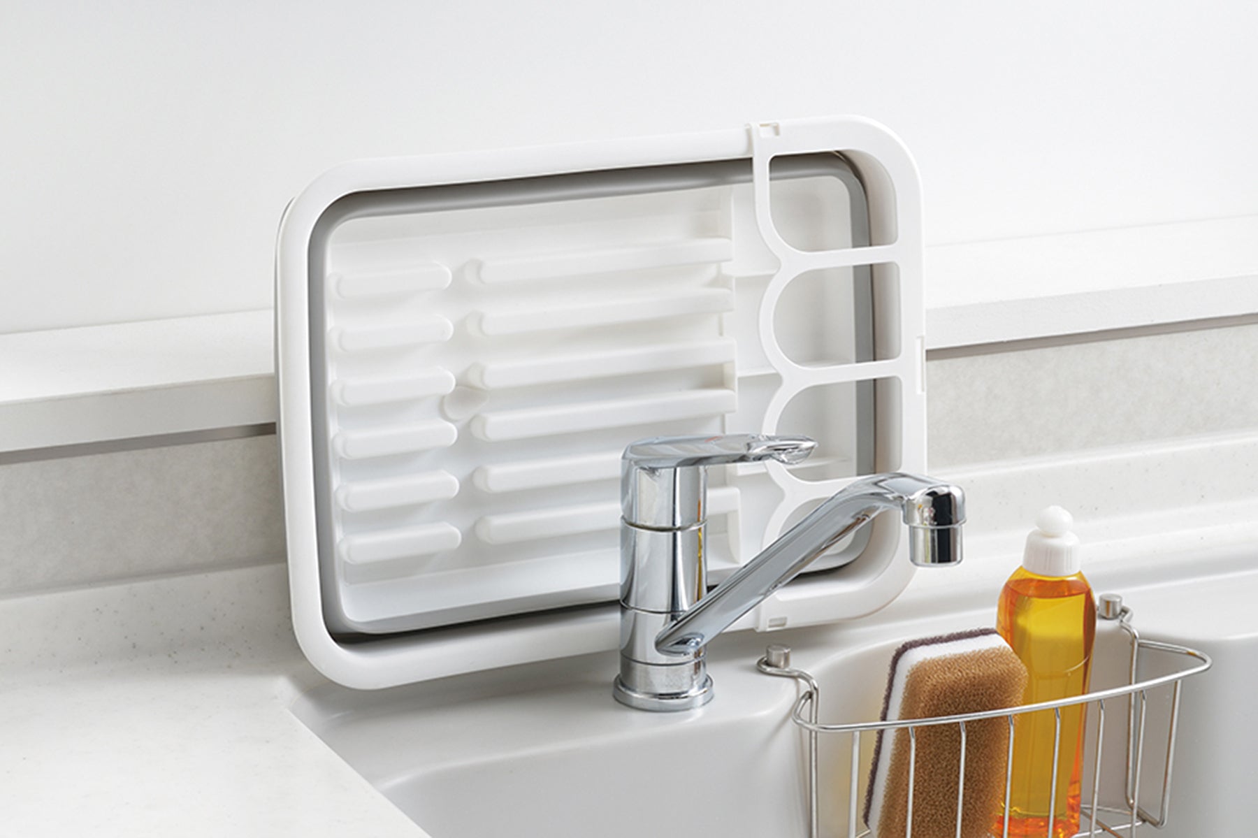 ディズ 折畳み水切りバスケット コンパクトタイプは、水回りをスッキリきれいに収納できます。