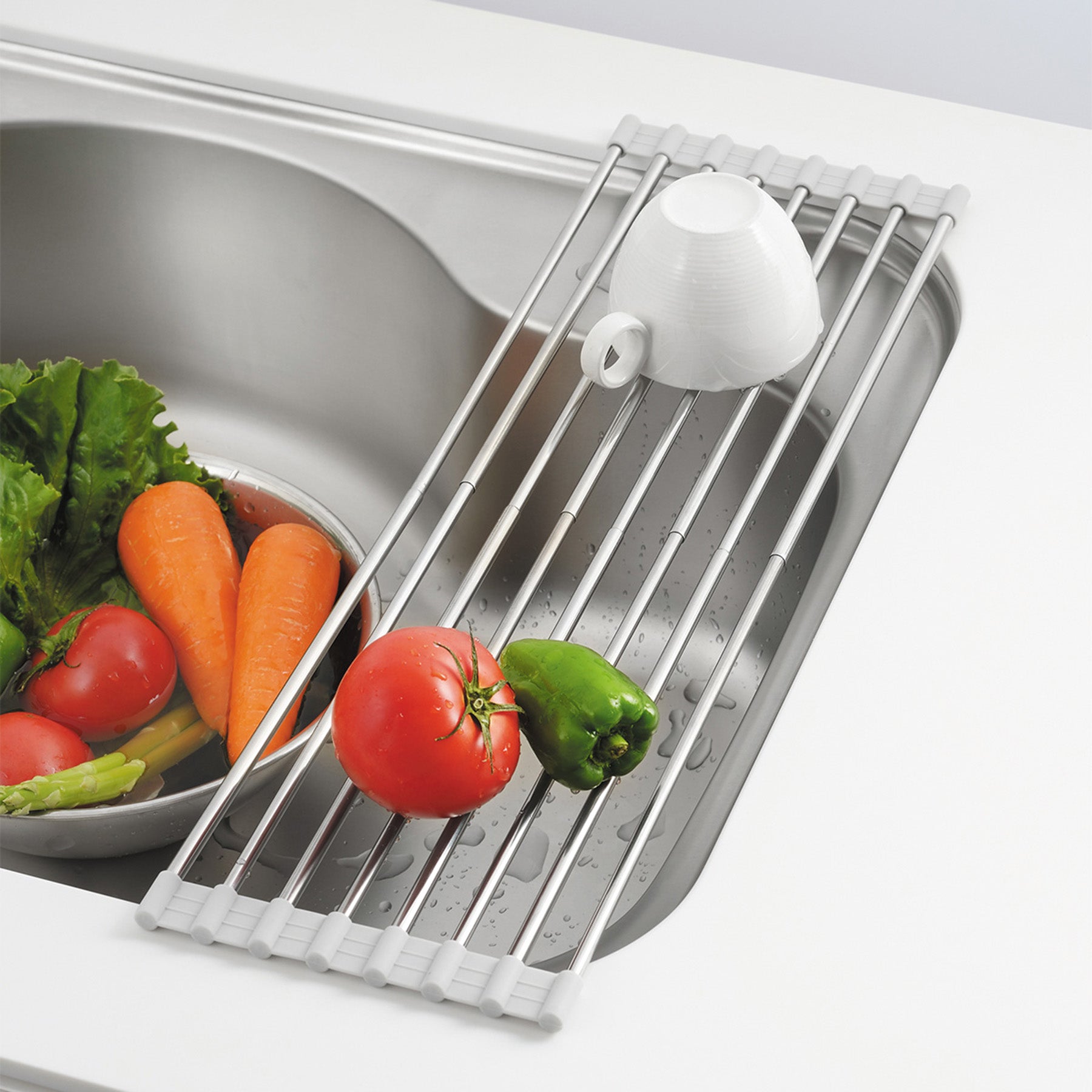 伸縮させることができ、シンクの幅に合わせて調節できます。