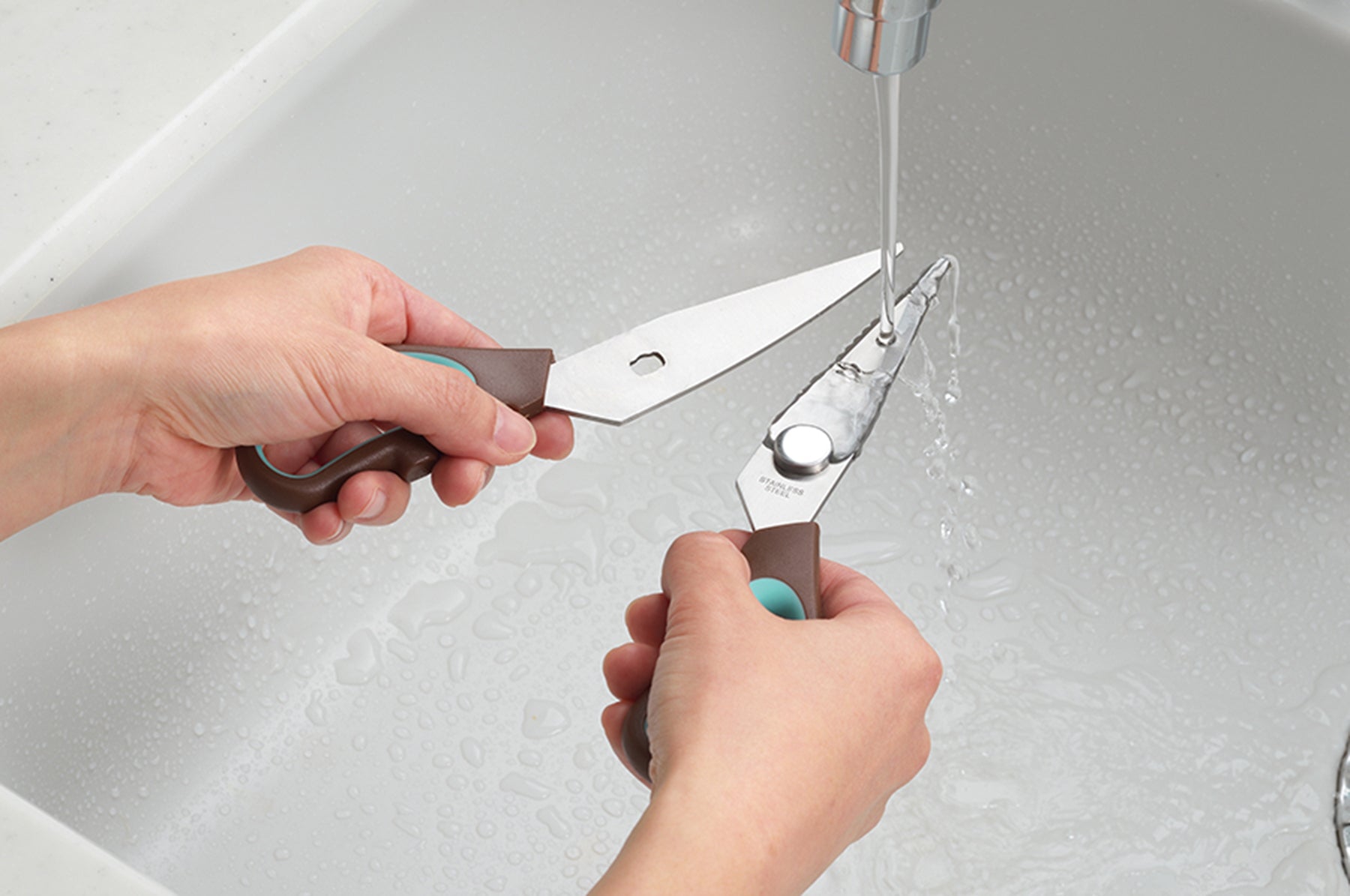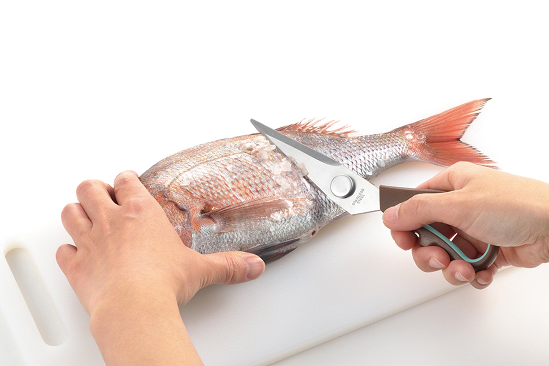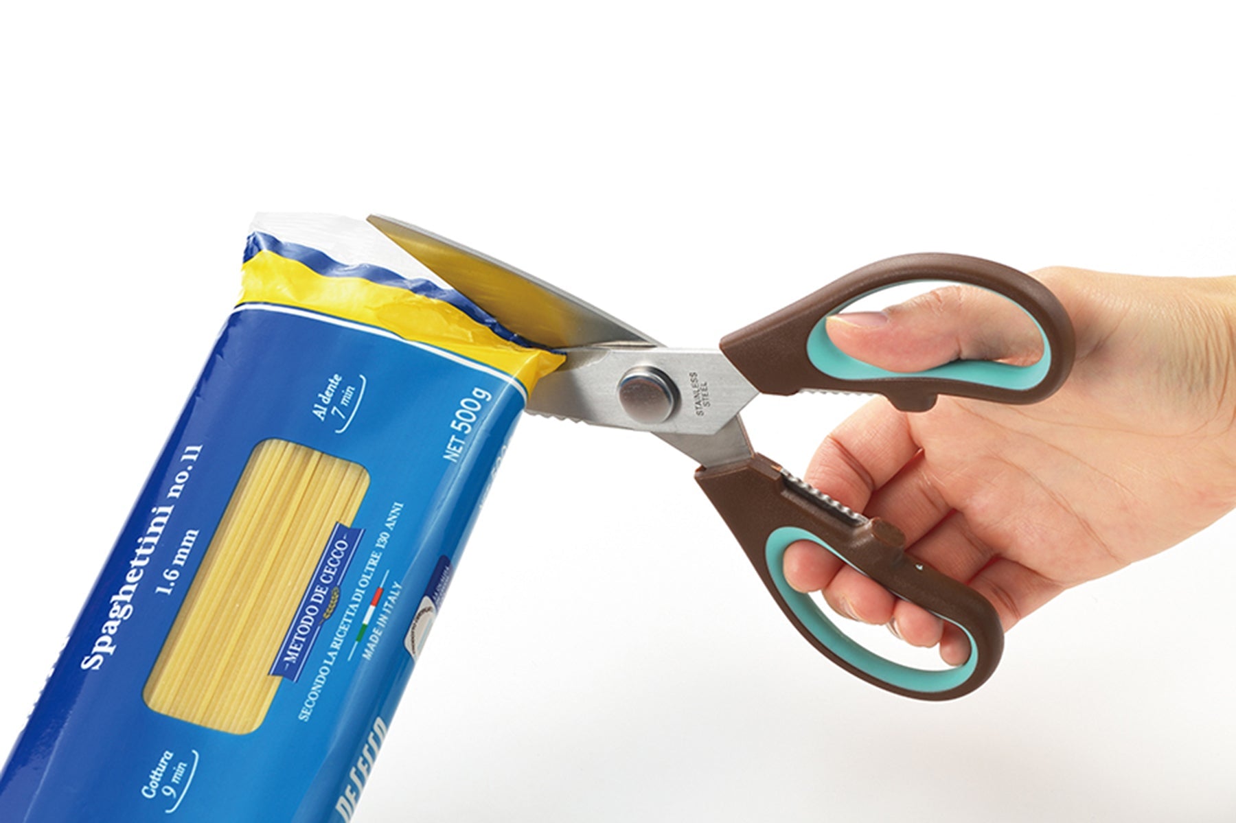 食品や袋のカット、ウロコ取りや殻割りなどマルチにこなせるキッチンハサミです。