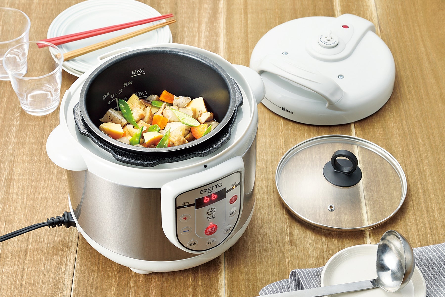 ERETTOmono” 電気圧力鍋3.0L”は、加熱時間をスイッチ操作でラクラク調整ができます。