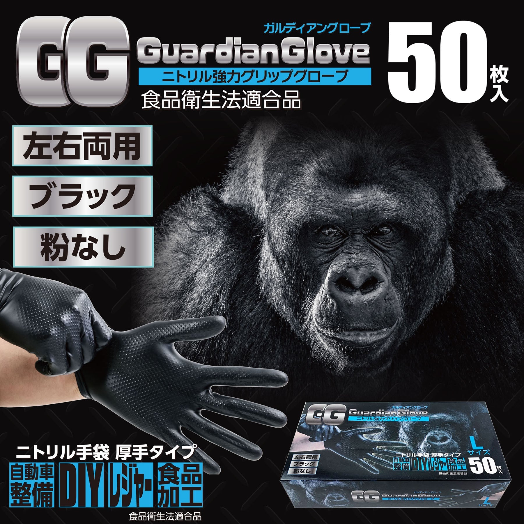 ニトリル ガルディアングローブ ブラック L 50枚入 0610-0050-40