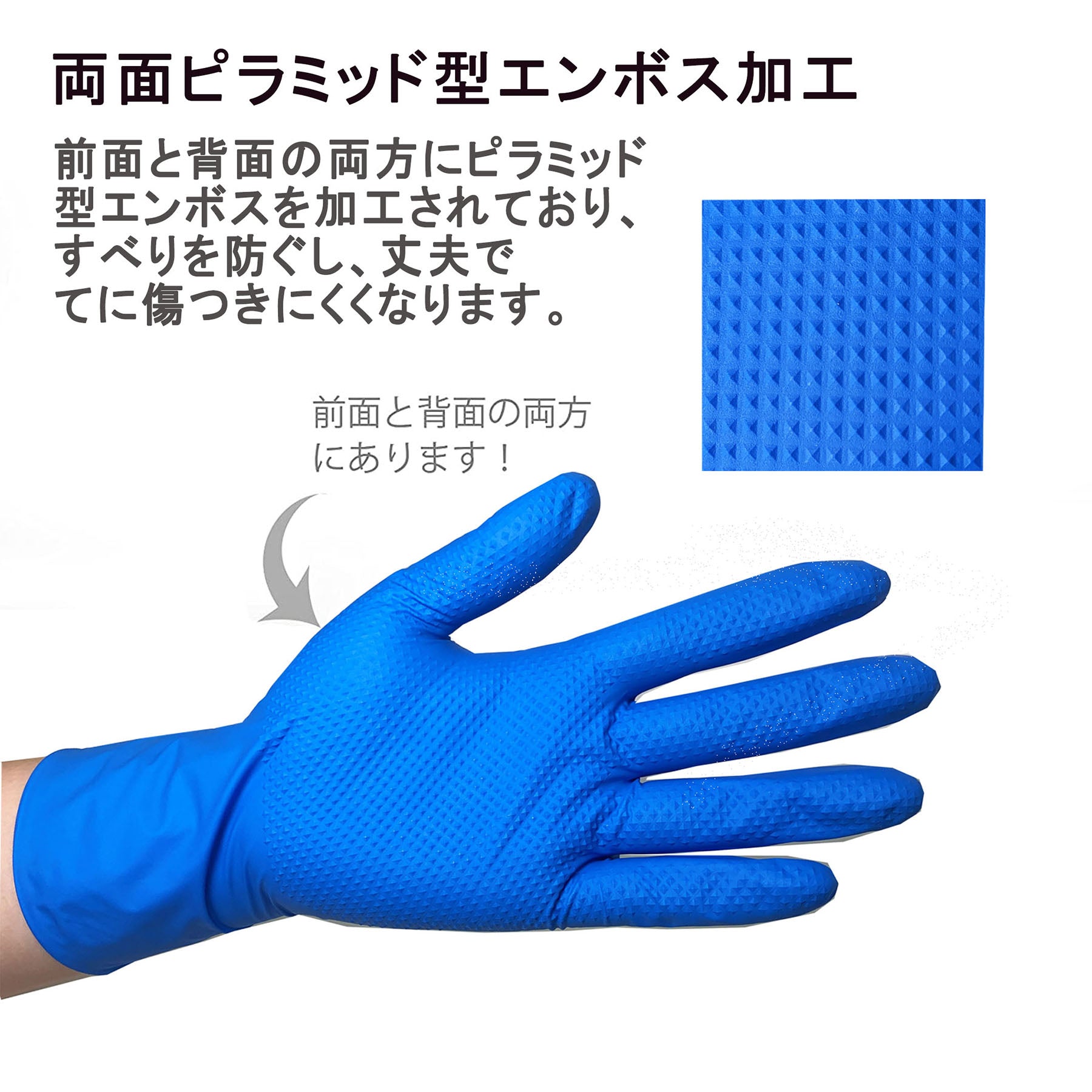 ●合成ゴム性でラテックスアレルギーの方でも手荒れを起こしにくい手袋です。