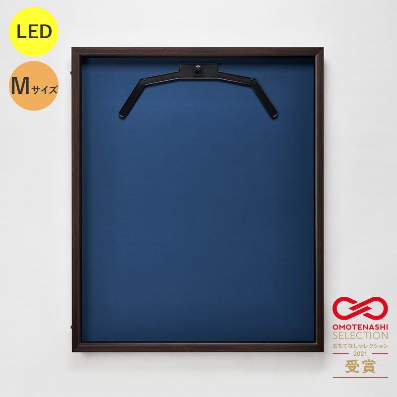 LEDユニフォームケース Mサイズ (フレーム:オーク 布:紺) UVアクリル