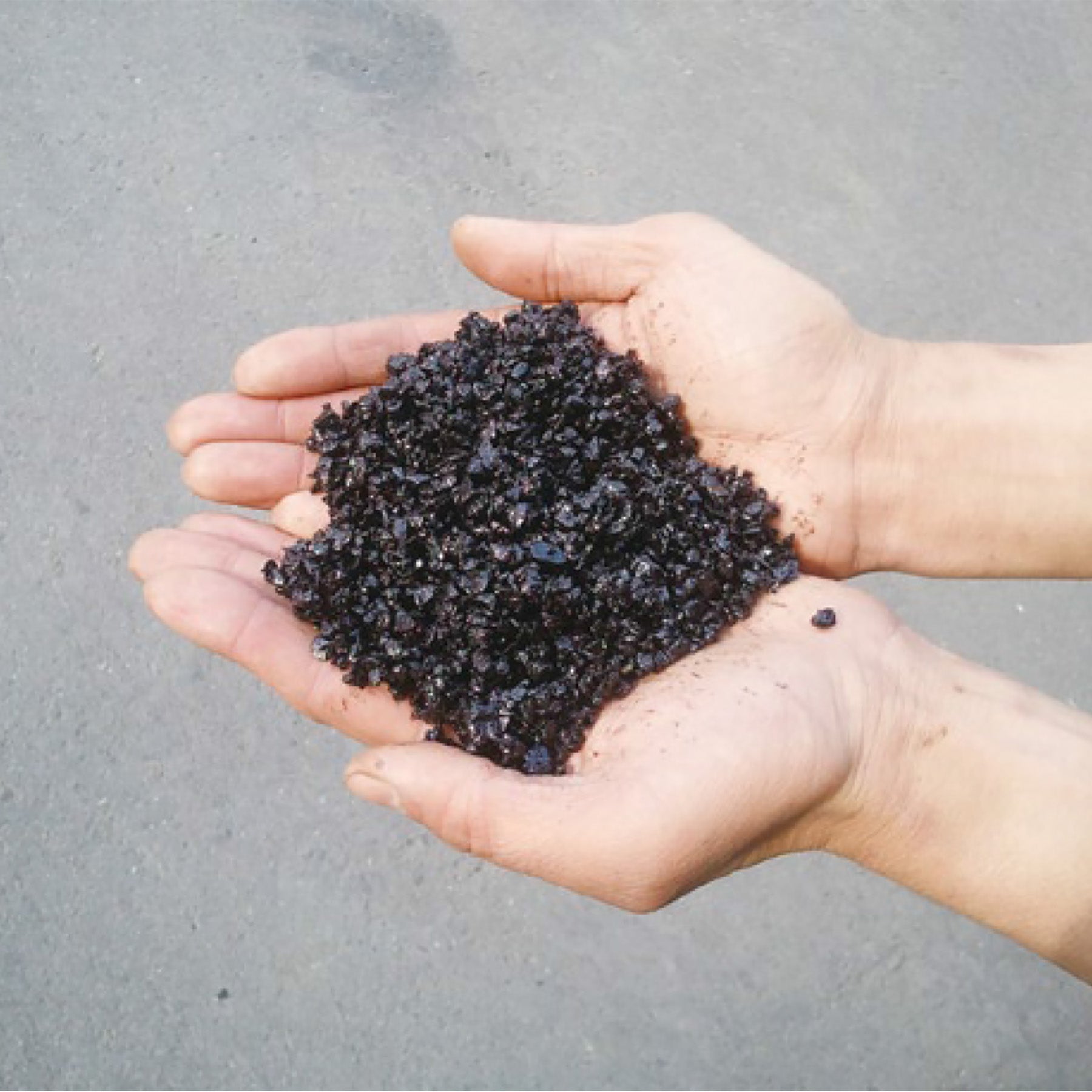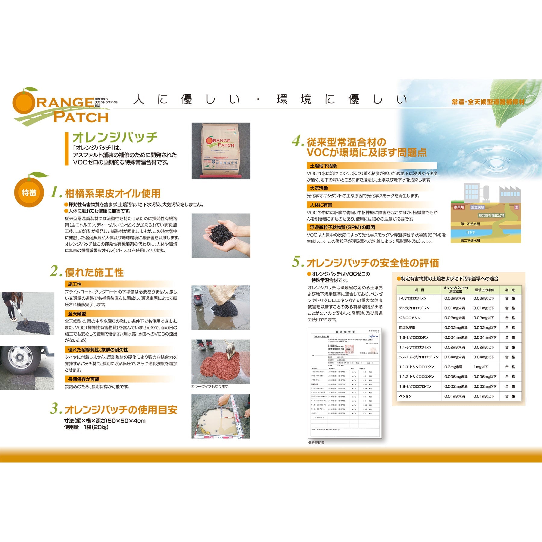 人に優しい・環境に優しい 植物性油及び柑橘系果皮オイル(シトラス)を使用した常温全天候型道路補修材です。