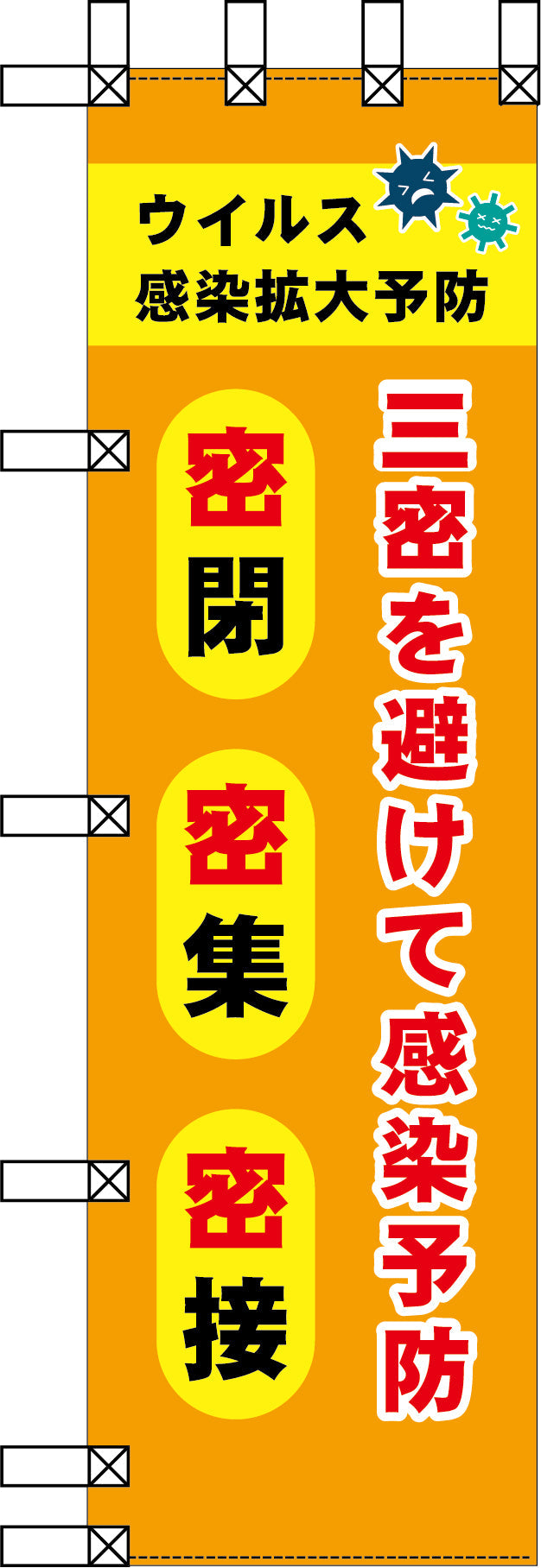 エコ環境のぼり 三蜜を避けて感染予防 密閉 密集 密接