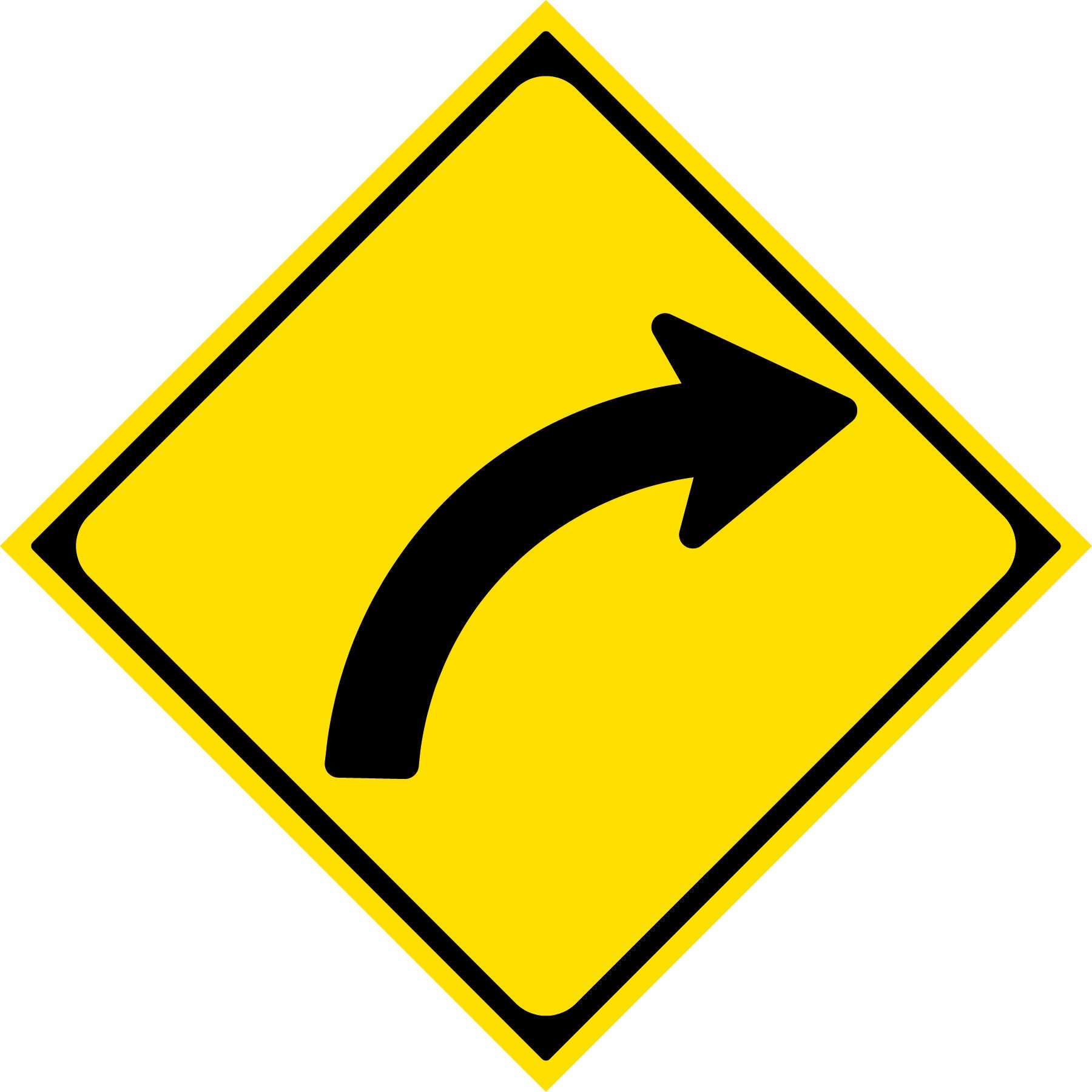 警戒標識 E202 右(または左)方屈曲あり エコボード400角