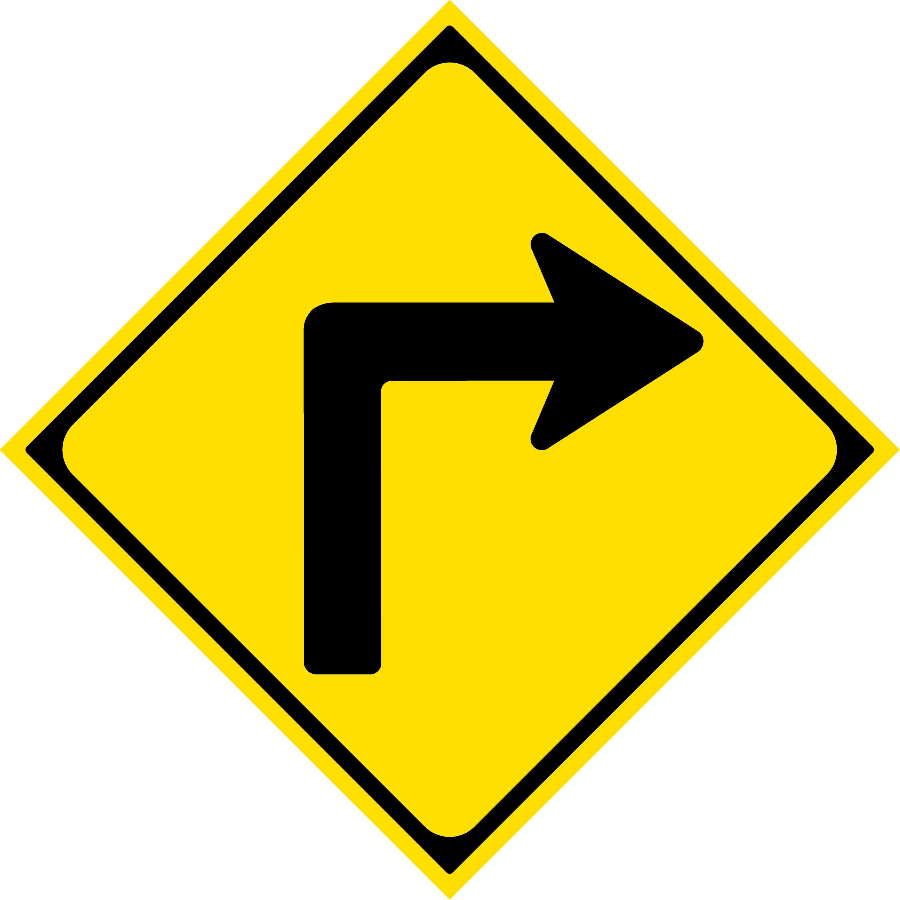 警戒標識 S203 右(または左)方屈折あり ステッカー600角