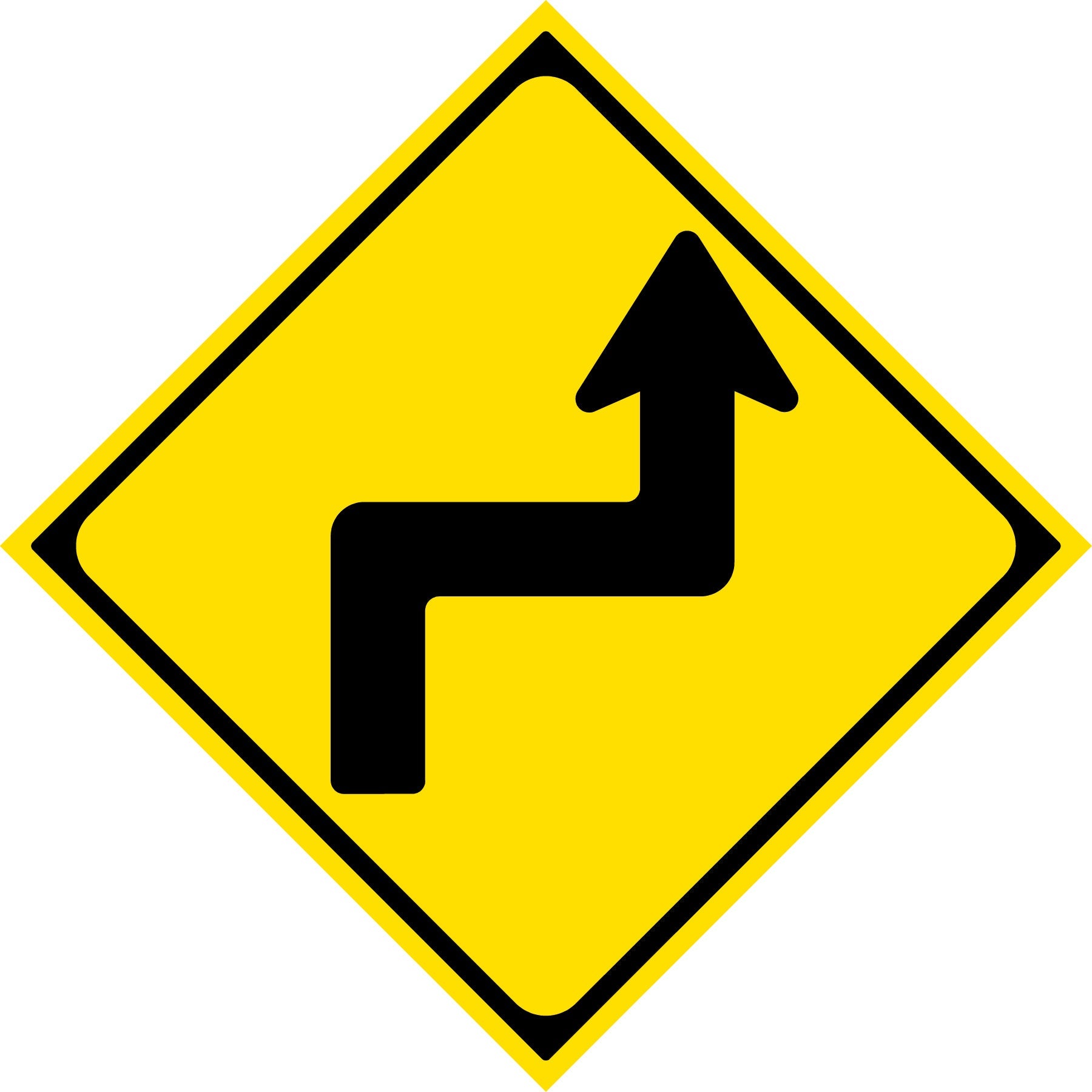 警戒標識 S205 右(または左)背向屈折あり ステッカー600角