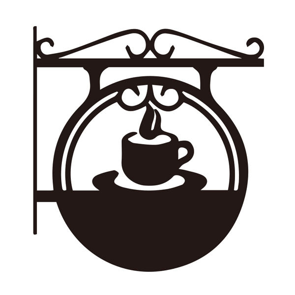コーヒーカップモチーフの装飾が付いた突き出しアイアンサインです。