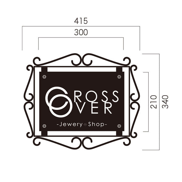 面板の周りに洋風装飾が付いた壁面アイアンサインです。