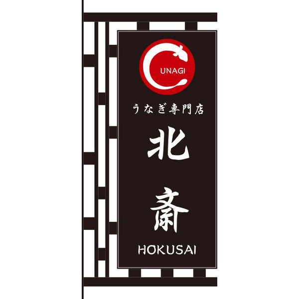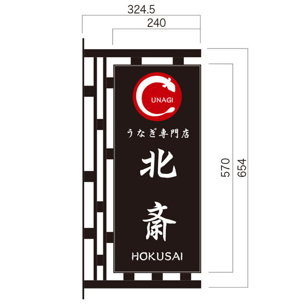 面板の周りに和風装飾が付いた突き出しアイアンサインです。