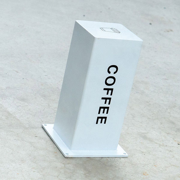 小ぶりなフォルムの四角柱型突出し看板です。
