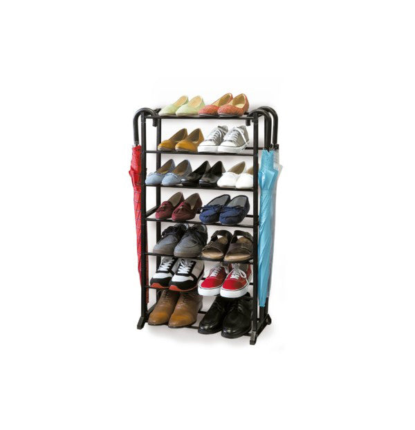 ●7段式で、靴をたっぷりと収納可能、傘は最大で6本まで掛けれるので省スペースで効率よく収納できます。