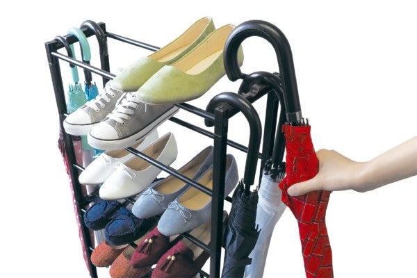 ●傘と靴をまとめて綺麗に収納できる傘掛け付シューズラックです。