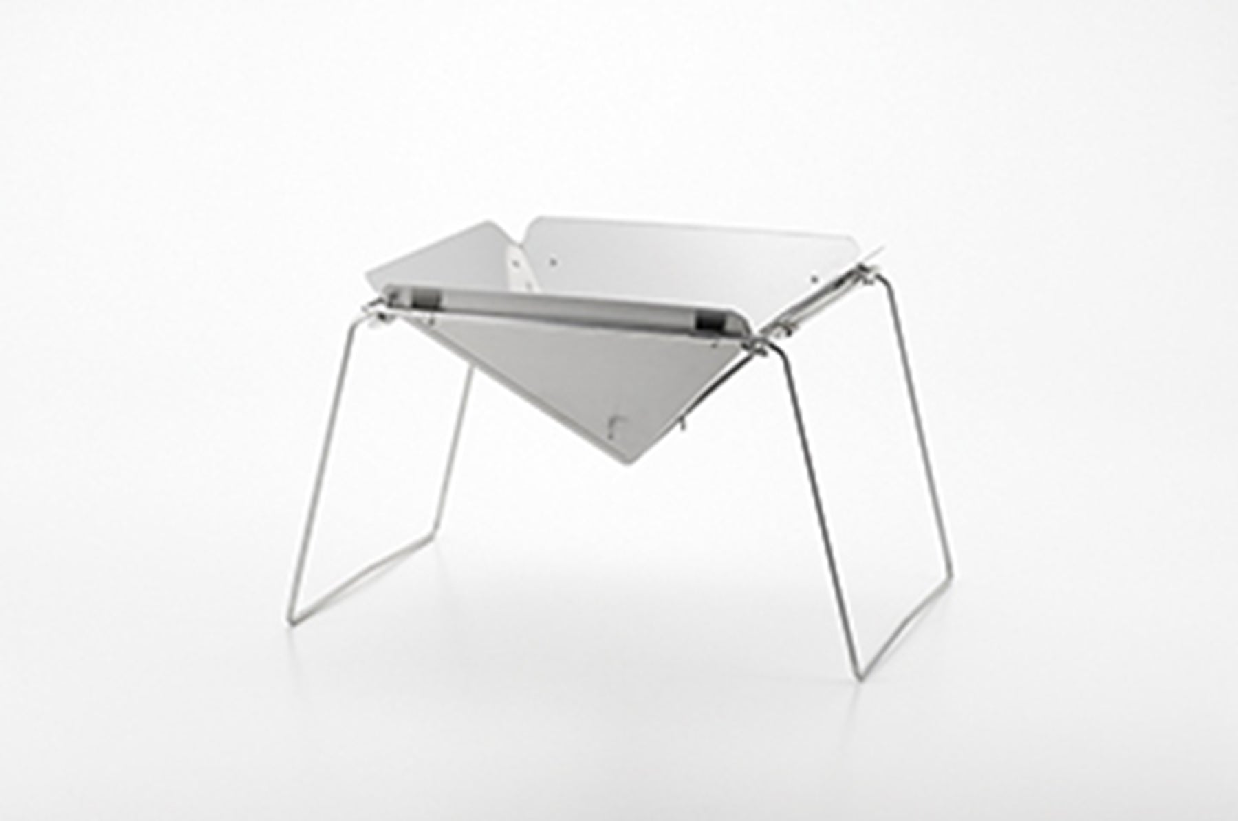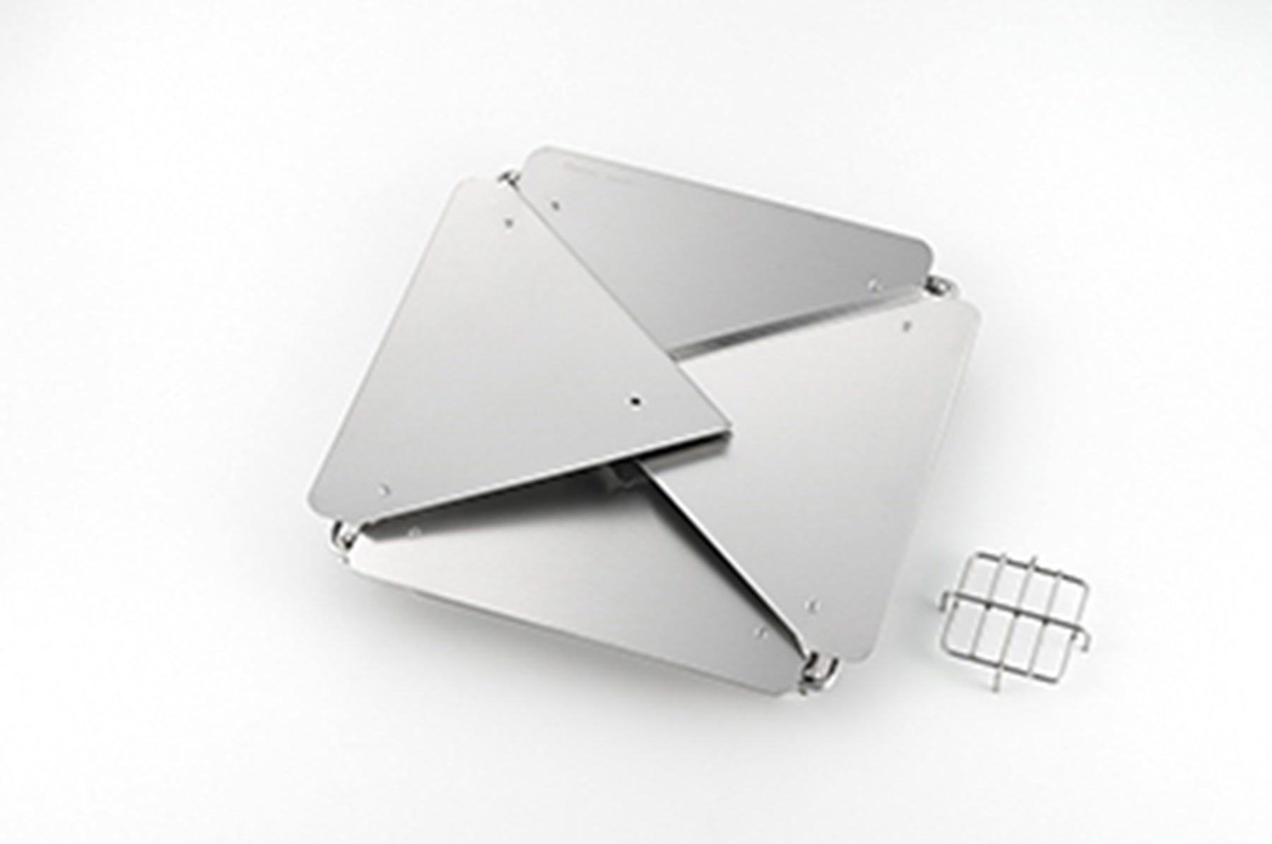 ●折りたたんだ本体(初回のみプレートを差し込み)を開いてロストルを差し込み地面に置くだけ簡単に設置できます。