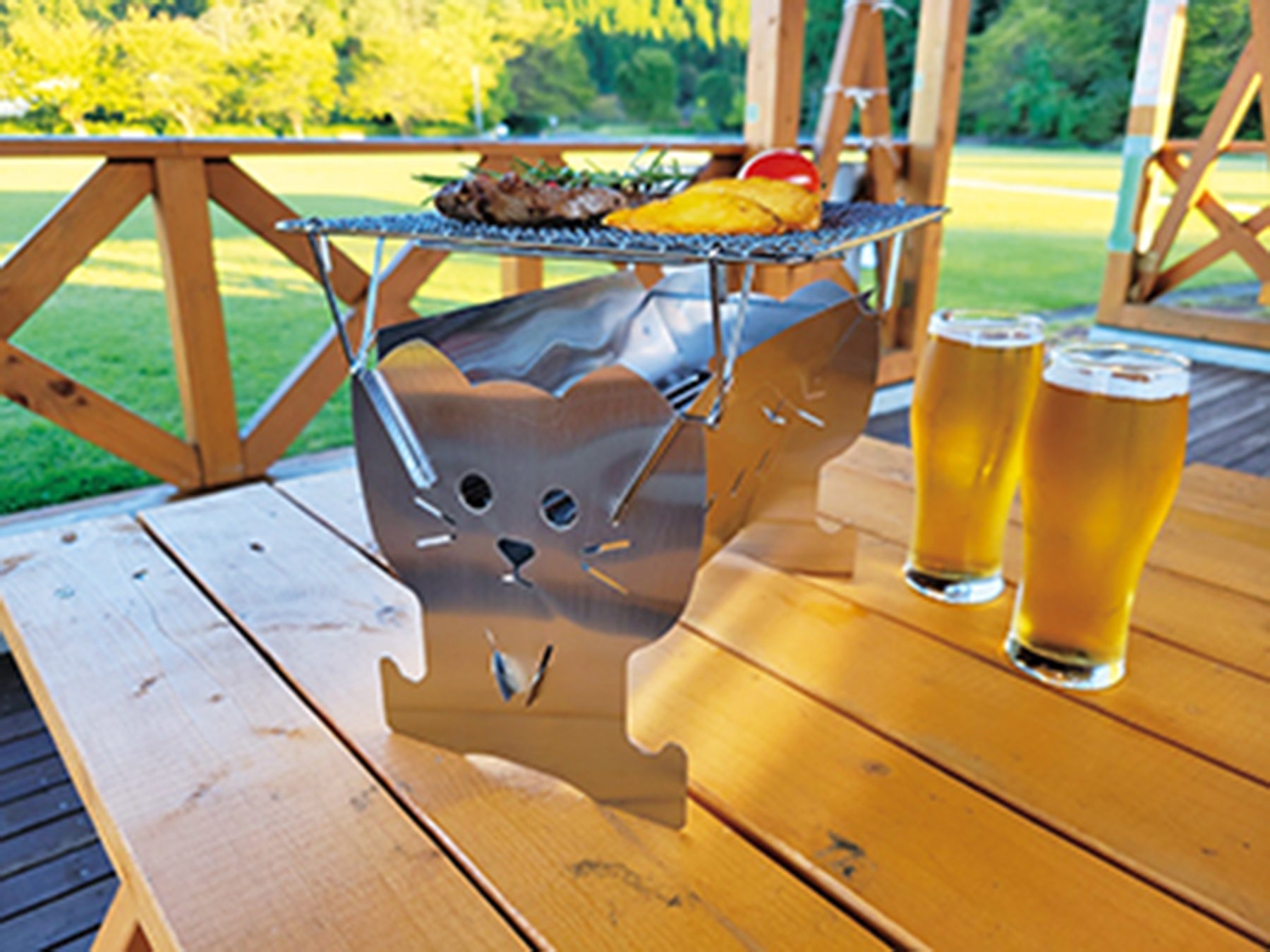 ●子猫をモチーフにしたかわいい1〜2人用のコンパクトコンロです。組立もパネルを差込むだけでOKです。