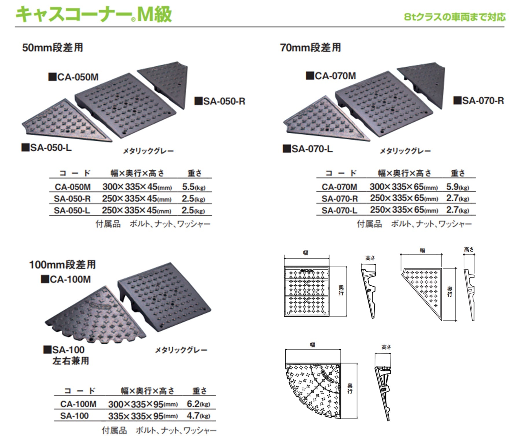 ●適用車両は、 M級: 8t車 まで H級: 30t車 まで。