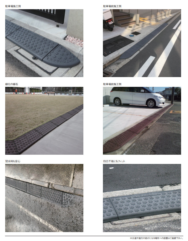 | 衝撃を和らげ、乗り入れスムーズ、困った段差をやさしいスロープに。 |