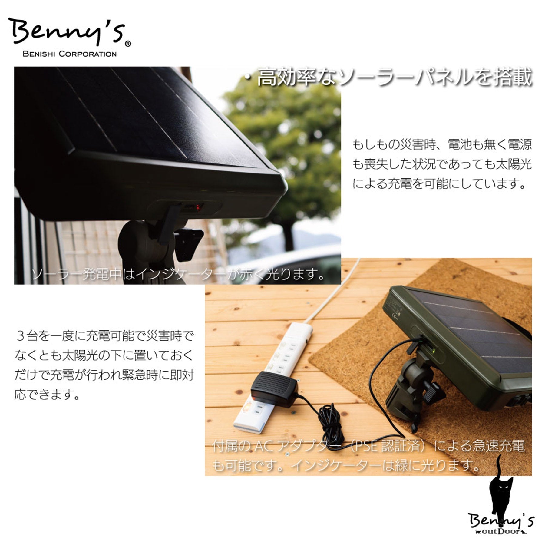 また、モバイルライトはソーラーステーションへドッキングさせることで、太陽光充電が可能になります。
