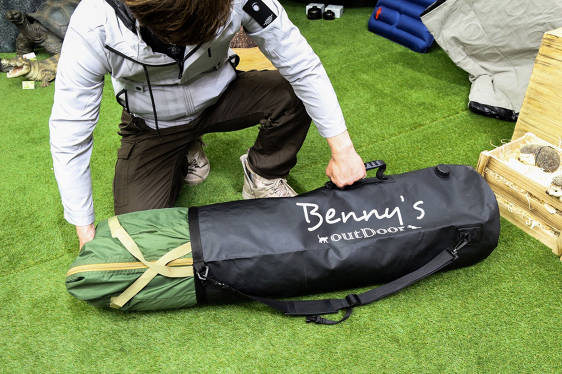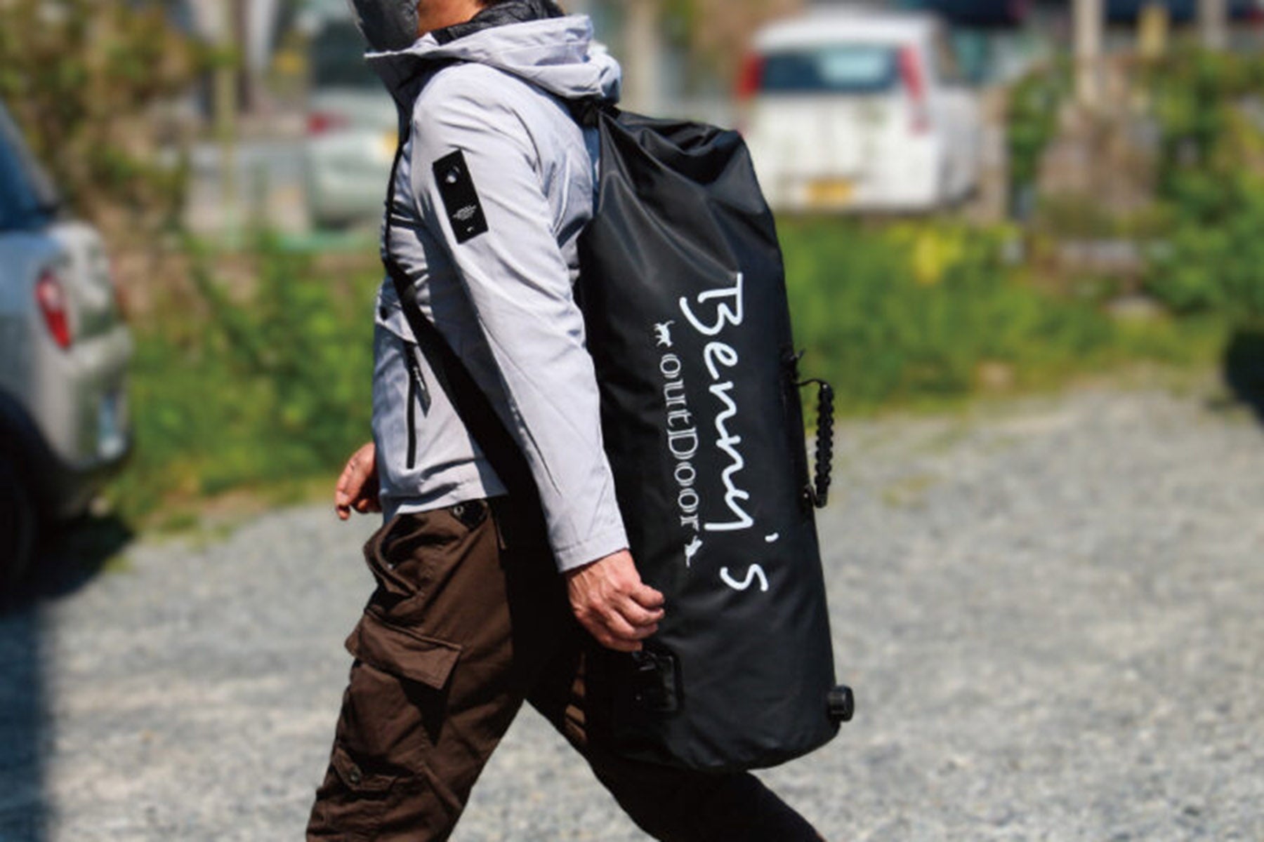 ●50リットルもの大容量にゴムボート等に使われる塩化ビニル系多層素材で丁寧に製作され、各種アタッチメントにより優れた対応力を持たせました。