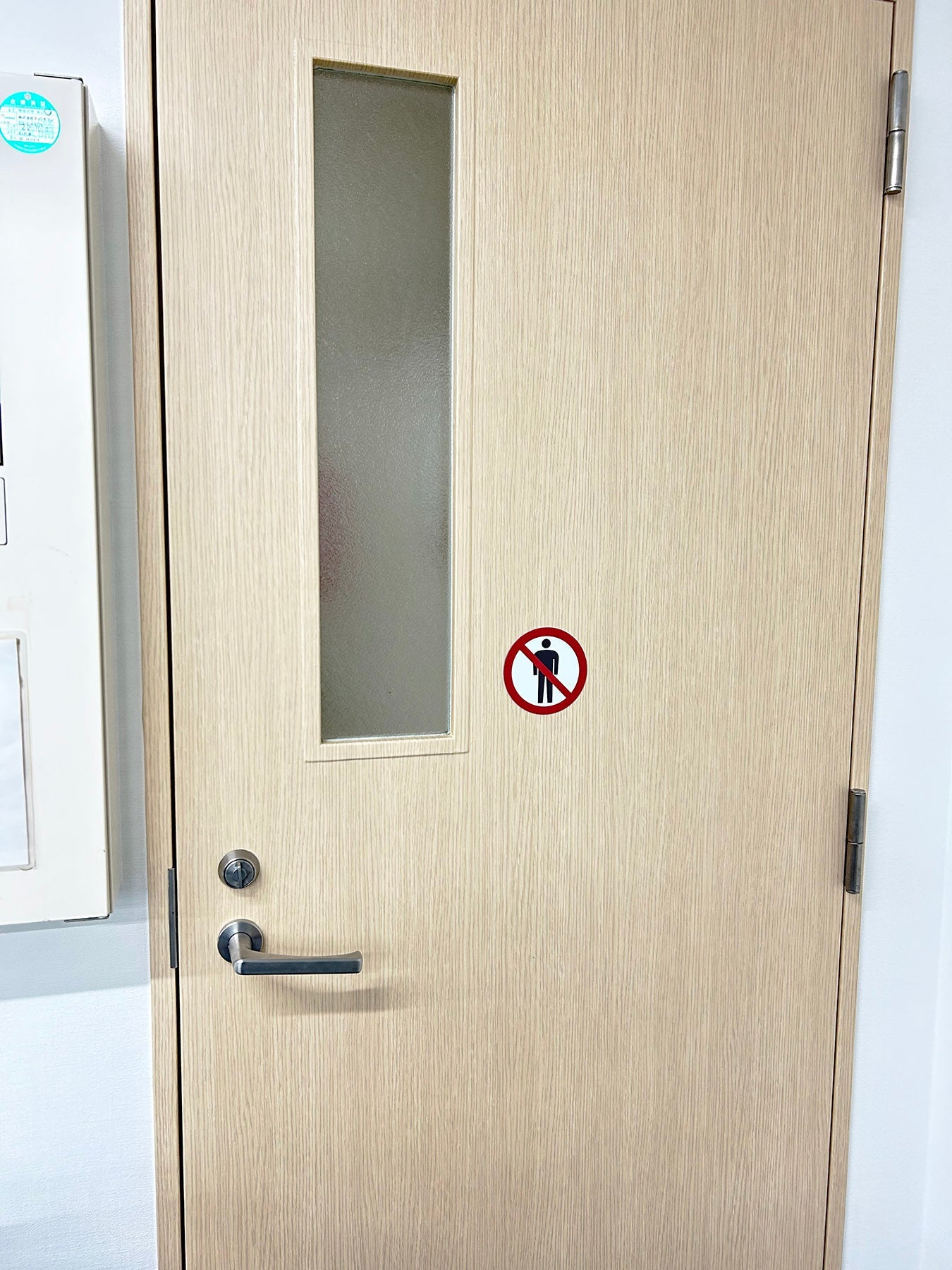 ●ドアや壁などに簡単に貼り付けることができ、わかりやすく注意を促せます。シンプルなので景観やその他標識等の邪魔になりません。