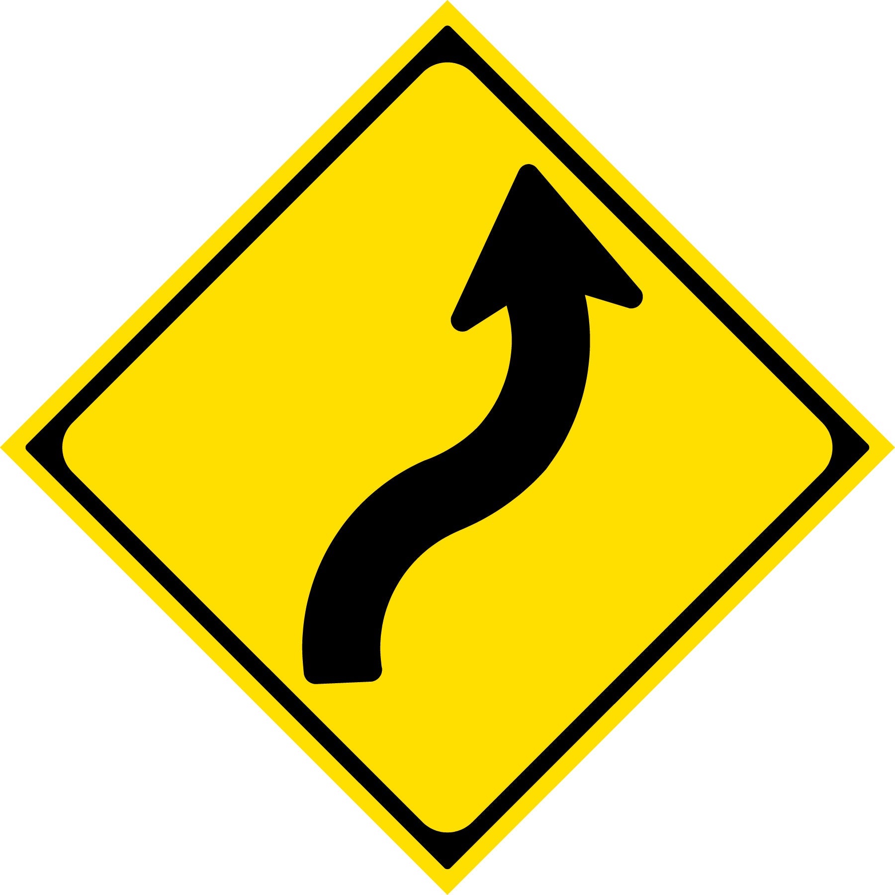 警戒標識 M204 右(または左)背向屈曲あり マグネット50角5枚セット