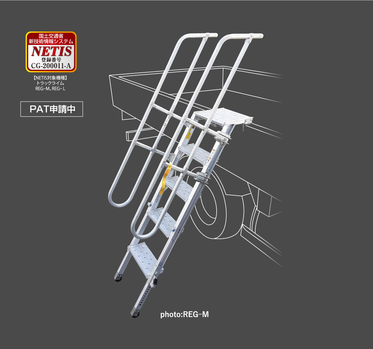 アルミ製トラック昇降ステップ トラックライム 垂直床高1391~1847mm REG-L