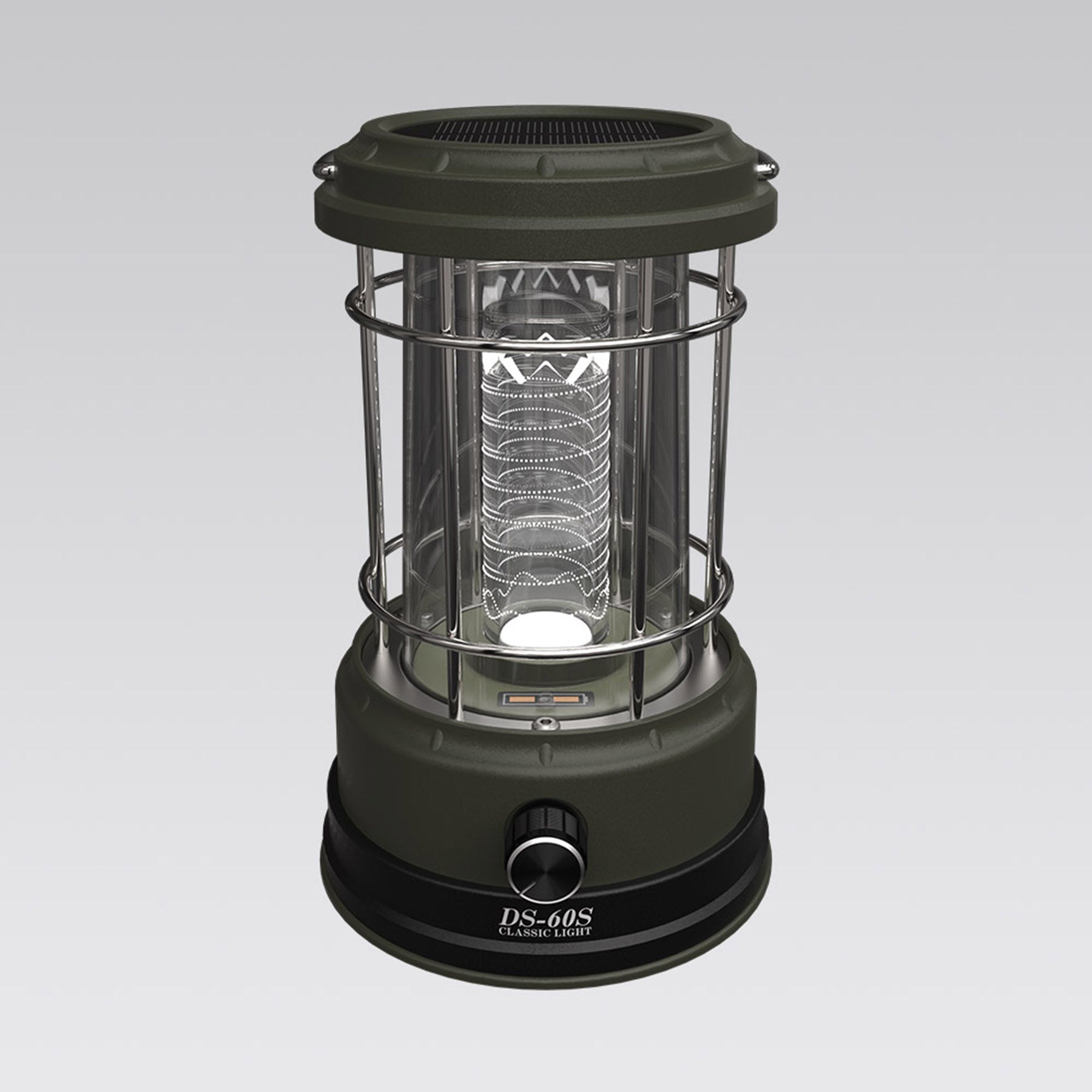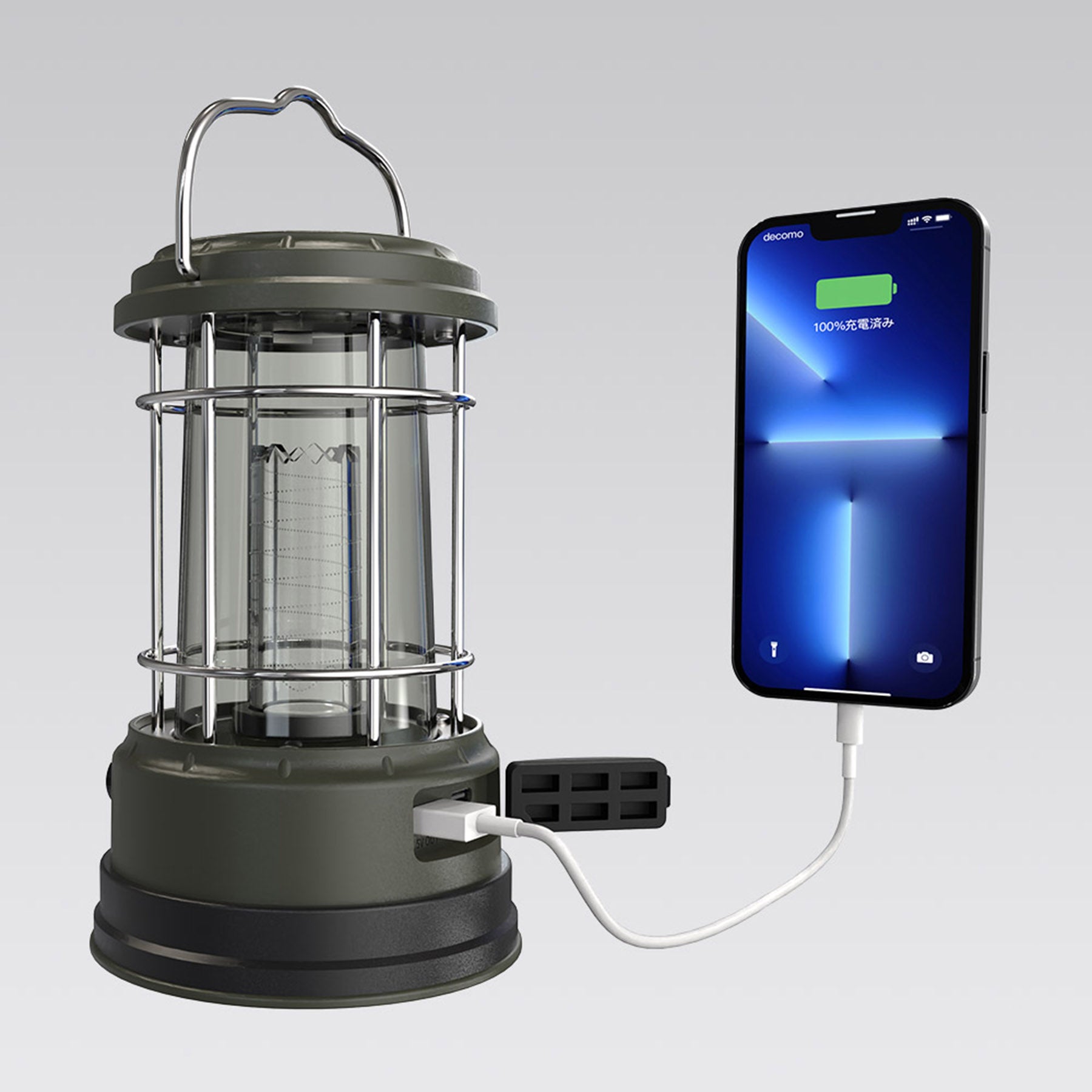 ●螺旋を描く発光柱が特徴的で、実用性も備えたLEDランタンです。本体上部に小型ソーラーパネルを実装し、太陽光充電中は青い指示ランプが点滅します。無段階調光での点灯時間は最大120時間で、シーンに合わせて明るさを自由に調節いただけます。5V 1A規格USBポートを搭載しており、コンセントがないところでも、ランタンから直接給電出来ます。