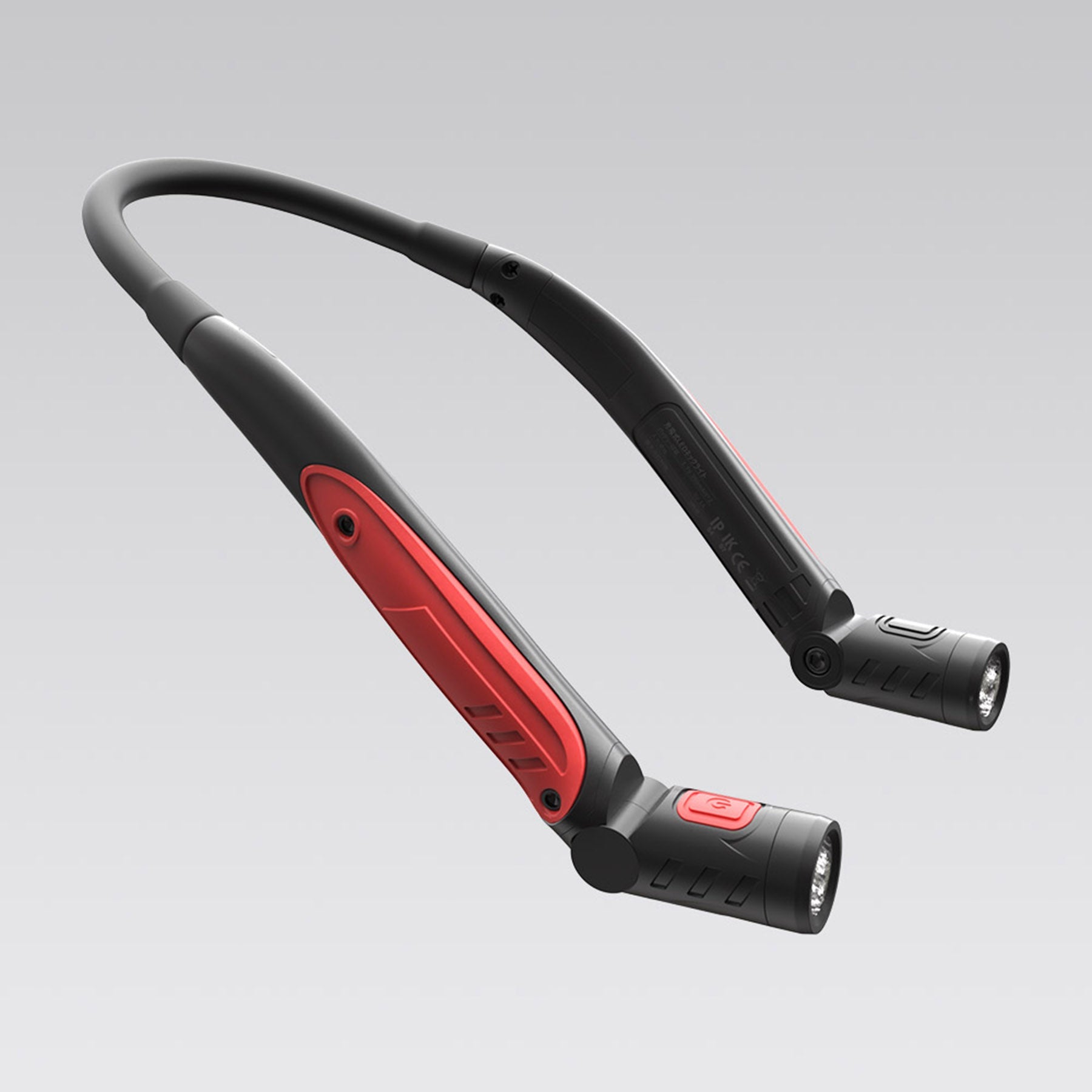 ●フレキシブル素材により首にフィットし、ライト先端が可動式のため角度調整も可能です。本体重量わずか140gで、長時間使用しても首への負担が少なく済みます。防眩レンズを採用し、目に優しく眩しさを軽減しています。