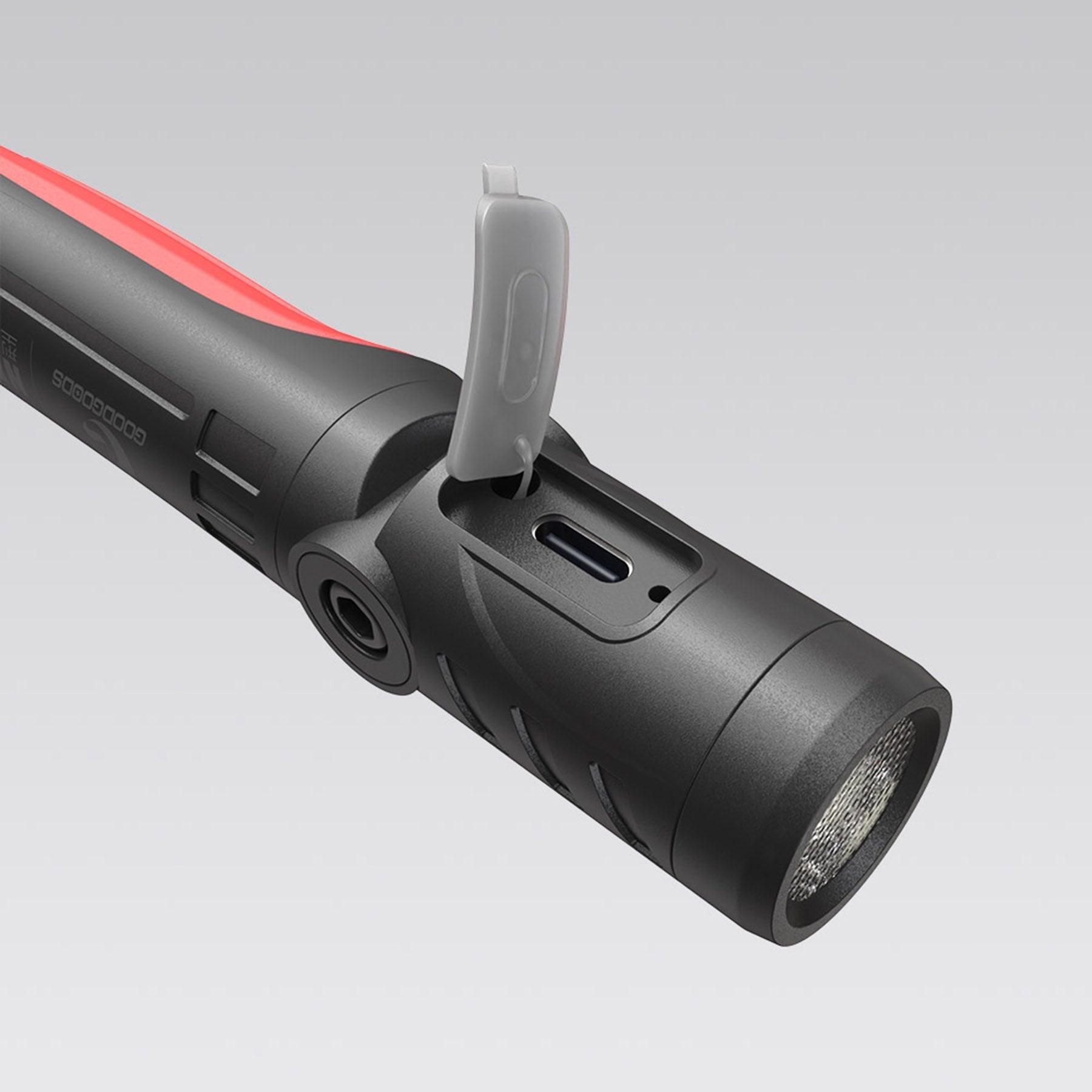 LEDネックライトは、フレキシブル素材を使用して首にフィットし、先端が可動式で角度調整が可能です。わずか140gの軽量設計で、長時間の使用でも首への負担が少なく快適です。防眩レンズにより、目に優しく眩しさを軽減します。全光束はHIGHモードで320ルーメン、LOWモードで160ルーメン。充電時間は約2.5~3時間で、Type-C充電方式を採用。防水保護等級はIP54で生活防水仕様、使用時間はHIGHモードで約2時間、LOWモードで約5時間です。