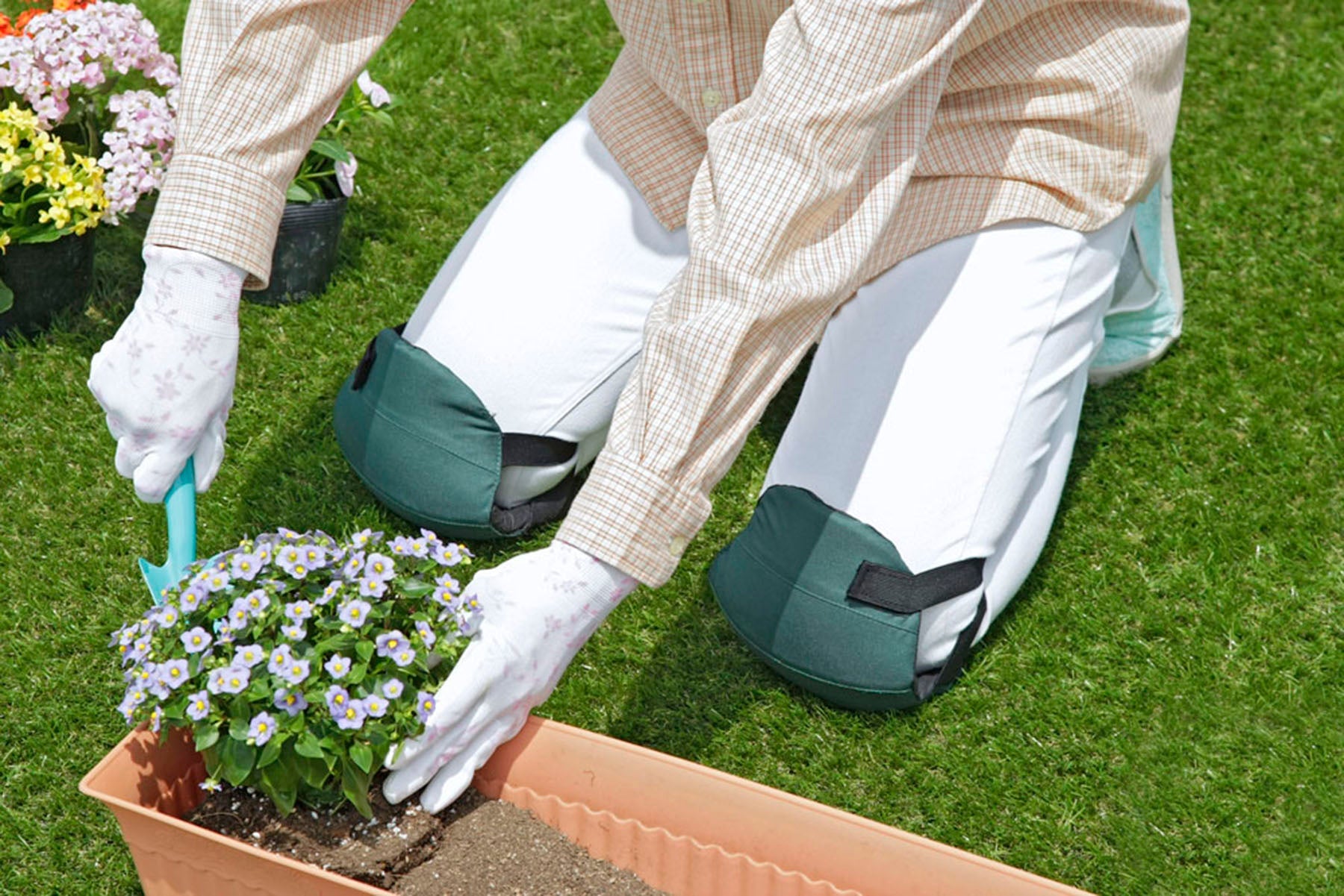 ●クッション材でひざをガードし、従来品よりもひざの曲げ伸ばしが楽に動かせます。