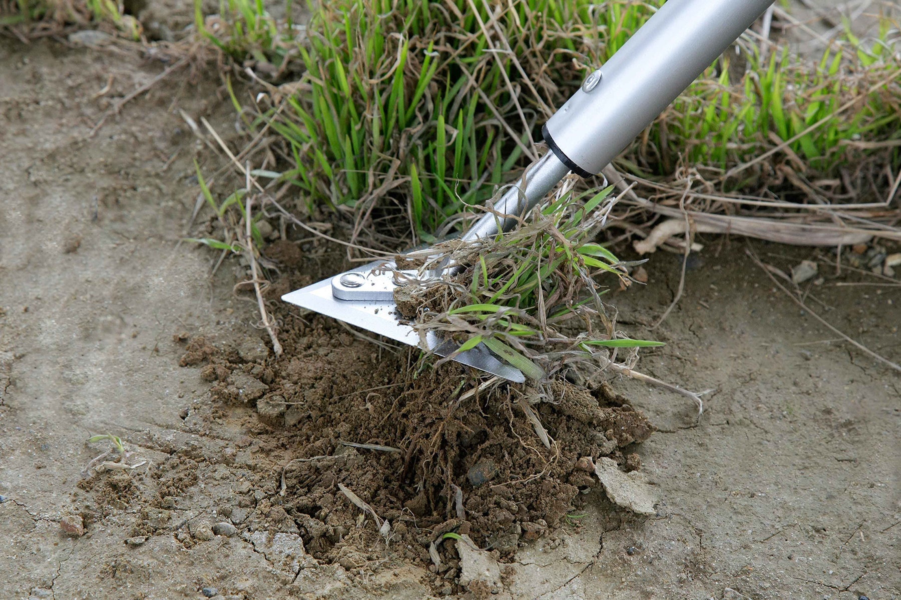 ●しゃがんだりせず、立ったまま作業ができるので、お年寄りや女性もラクラク草を刈れます。