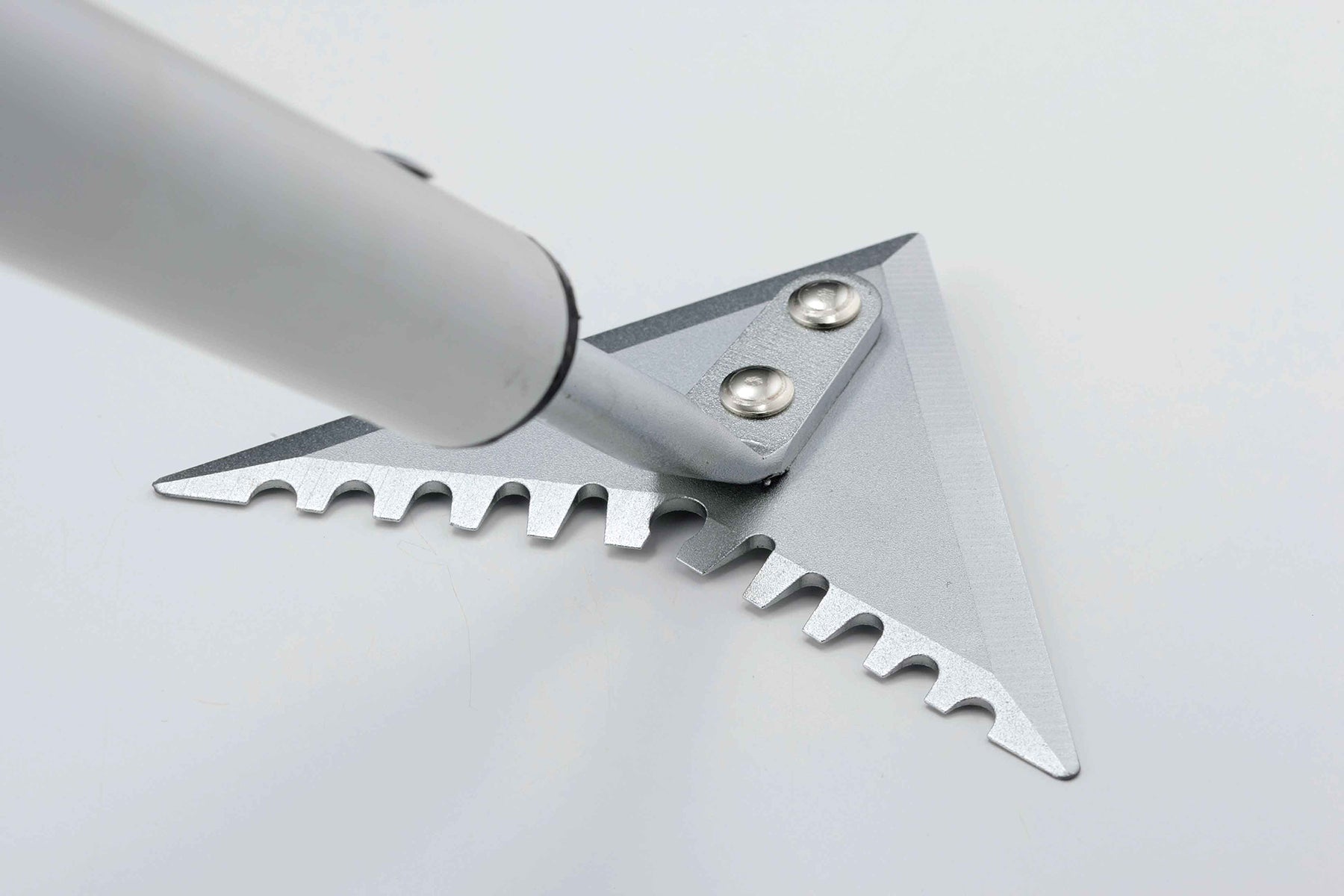 ●草を刈るときに引っ掛かりがよくなる特殊形状の刃にしました。押したり引いたりしても刈れるように全面に刃が付いております。
