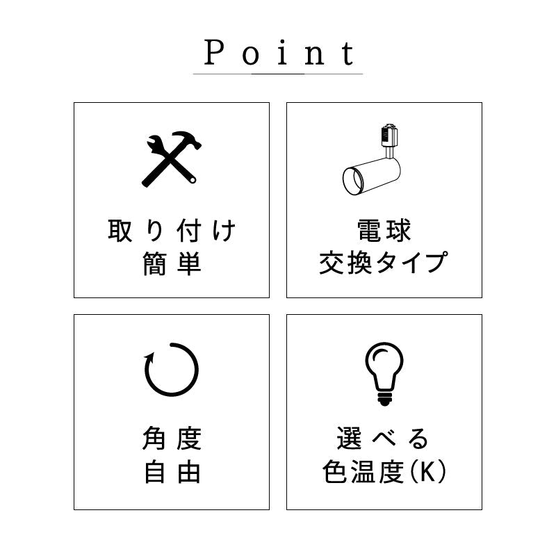 シンプルでモダンなスポットライト ダクトレール。取り付け簡単で角度も自在に調整できます。電球交換することにより、自宅、ギャラリー、BARなど幅広いシーンに適用。 |