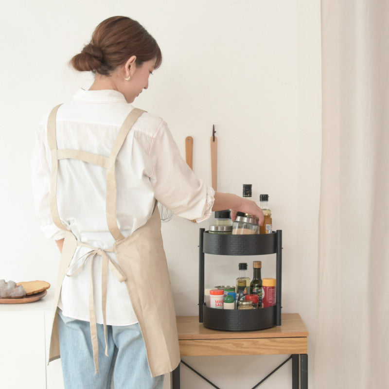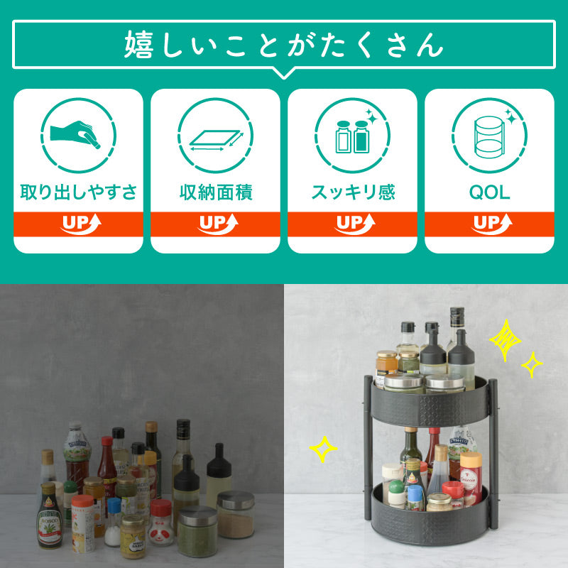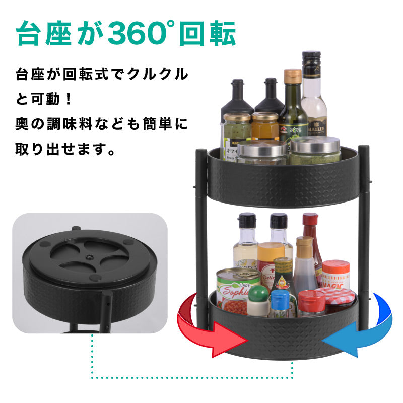 丸形2段収納ラック 調味料収納トレー 丸型トレー 360度回転可 多目的