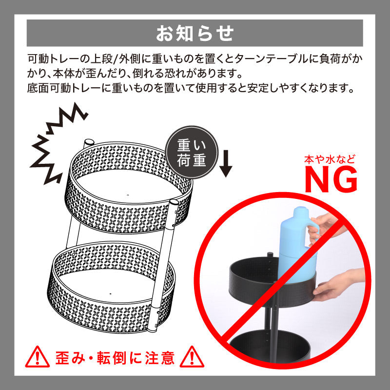 1段でも2段でも使用ができるので、使う場所に合わせられます。※ターンテーブルが付いているのは1つのトレーのみです。
