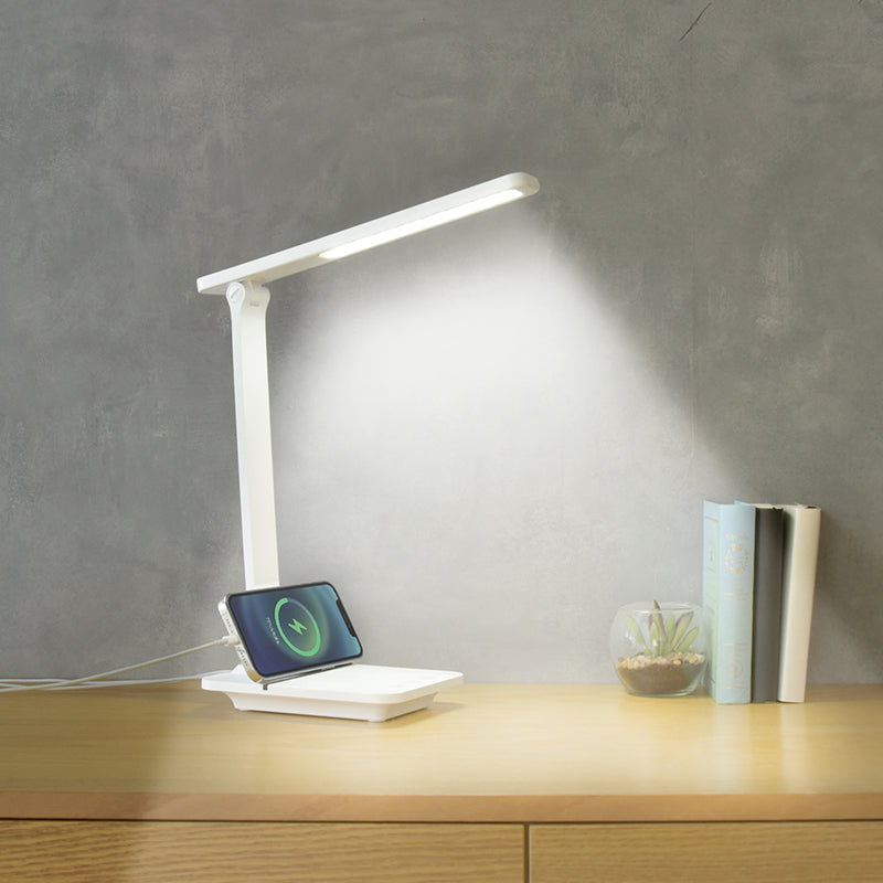 USB式LED卓上ライト。スマホスタンド、USBポート、折り畳み式。