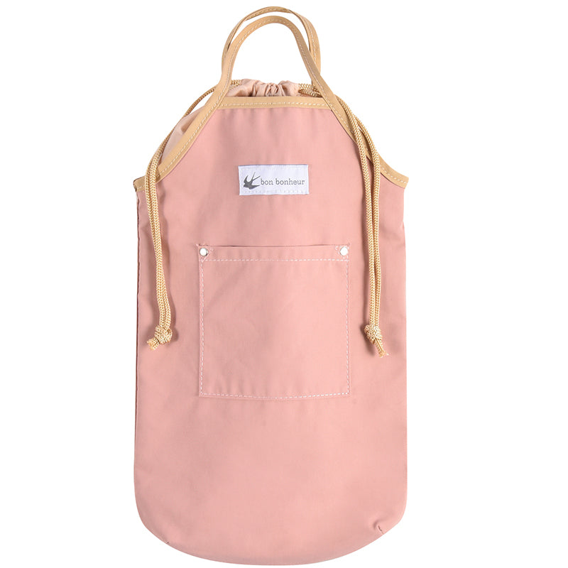 シューズバッグ 丸洗い 薄くて丈夫 間口広め 大人も使える 巾着 ピンクベージュ