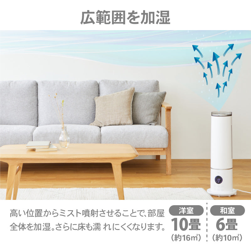 超音波タワー型加湿器 上部給水 6L大容量 リモコン付き 自動加湿 空焚き防止